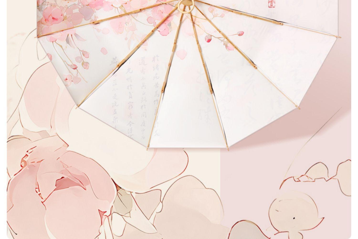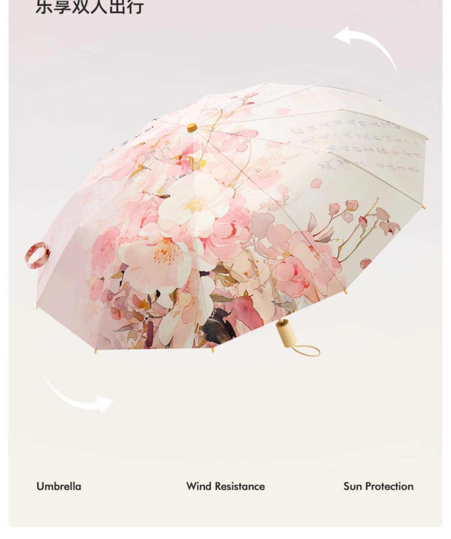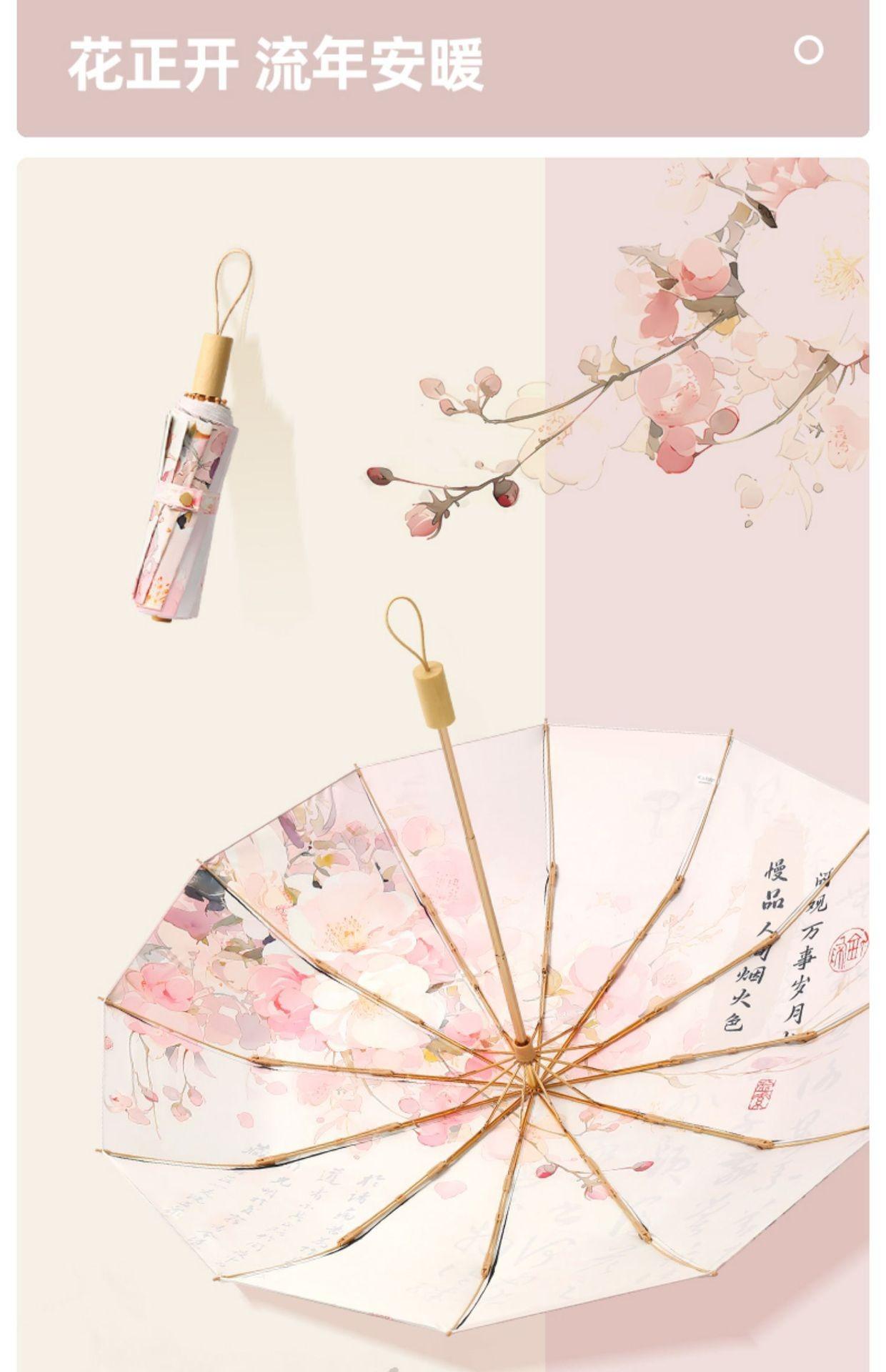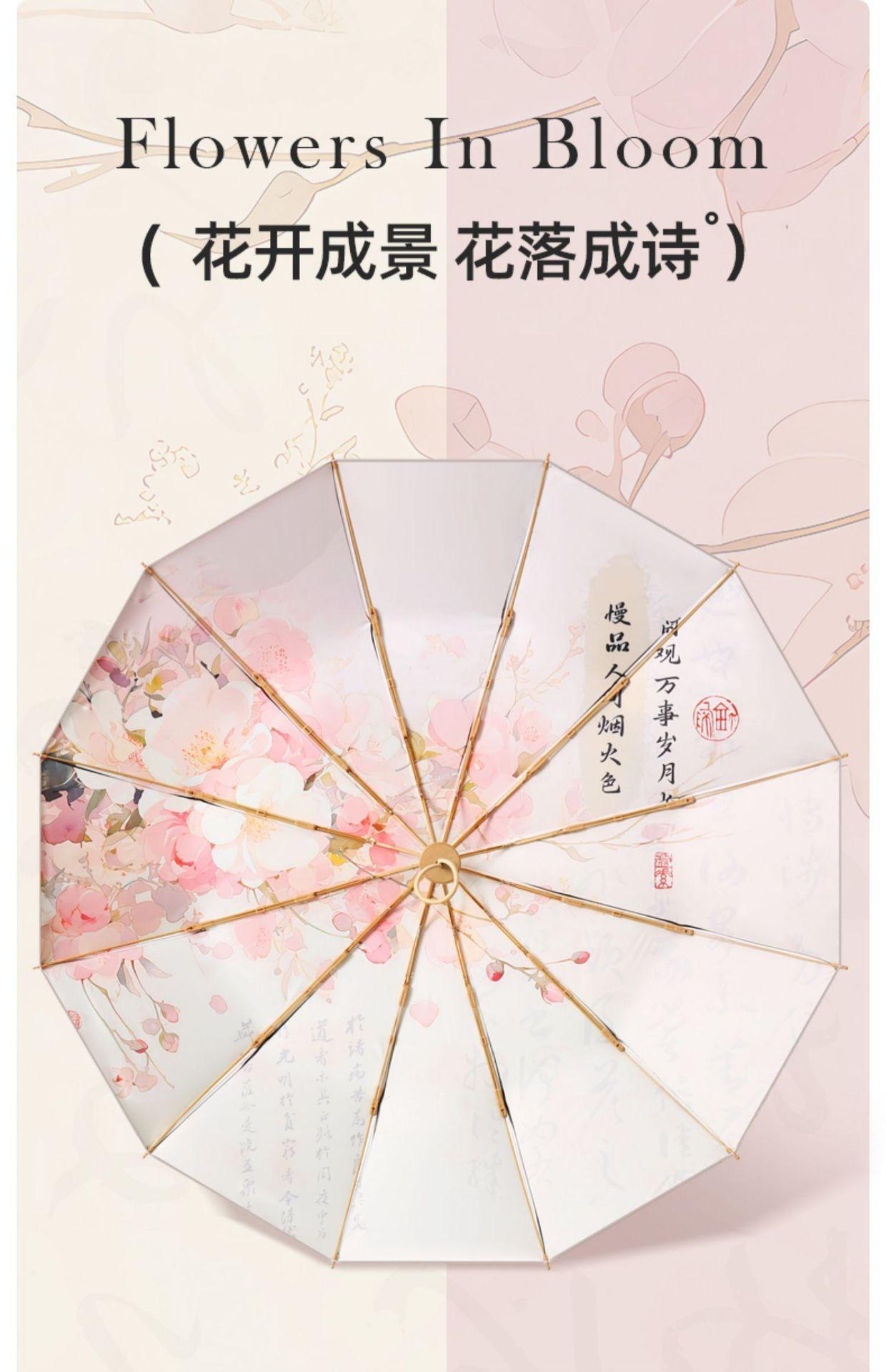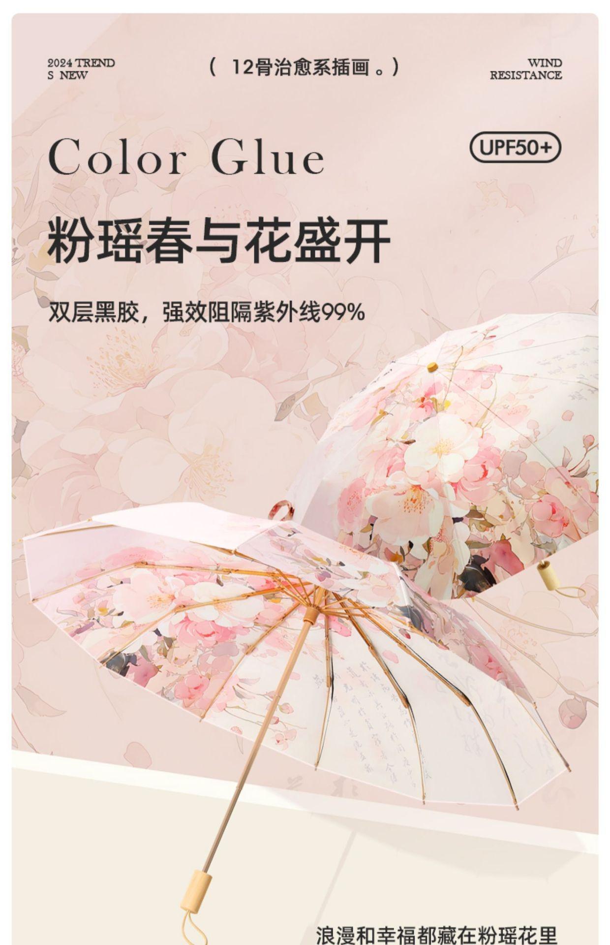 Paraguas plegable de 12 varillas, para mujer, con protección UV y pegamento de colores, para dos personas, tipo bolso de mano