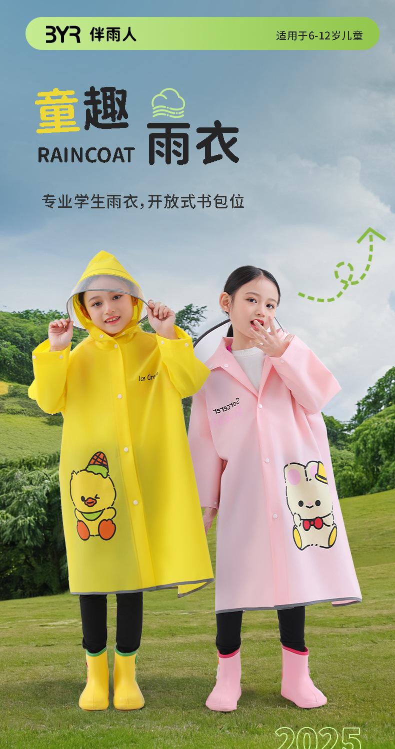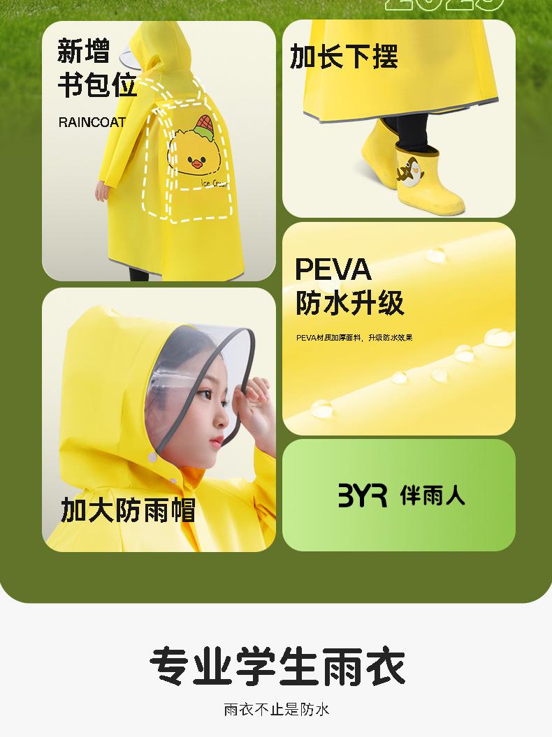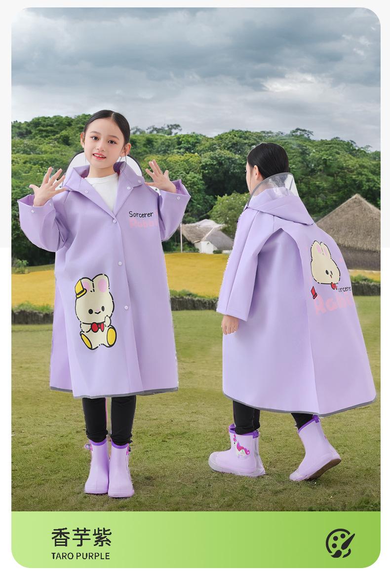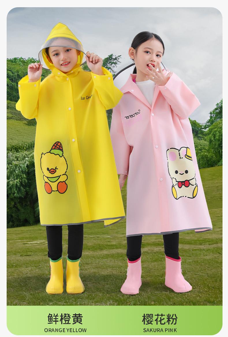 Impermeable Eva para niños con poncho de cuerpo único extendido para mochila, ala de sombrero doble a prueba de lluvia, estudiantes de primaria al por mayor