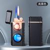 Encendedor inflable de doble llama con gradiente de metal, a prueba de viento, directo, con luz azul, visual, con popa, para explosiones transfronterizas, venta al por mayor