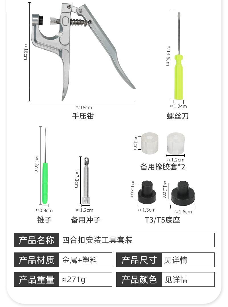 Botón a presión de resina T3/T5/T8 de Amazon, hecho a mano, herramienta de instalación de botones para ropa, alicates de presión, traje