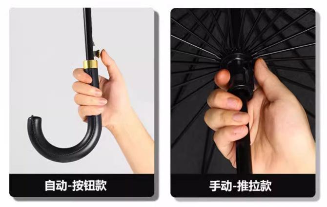 Paraguas de 24 huesos, automático, de fibra, recto, para hombre, de negocios, de gran tamaño, resistente al viento, venta al por mayor, paraguas soleado, personalizado, de mango largo.