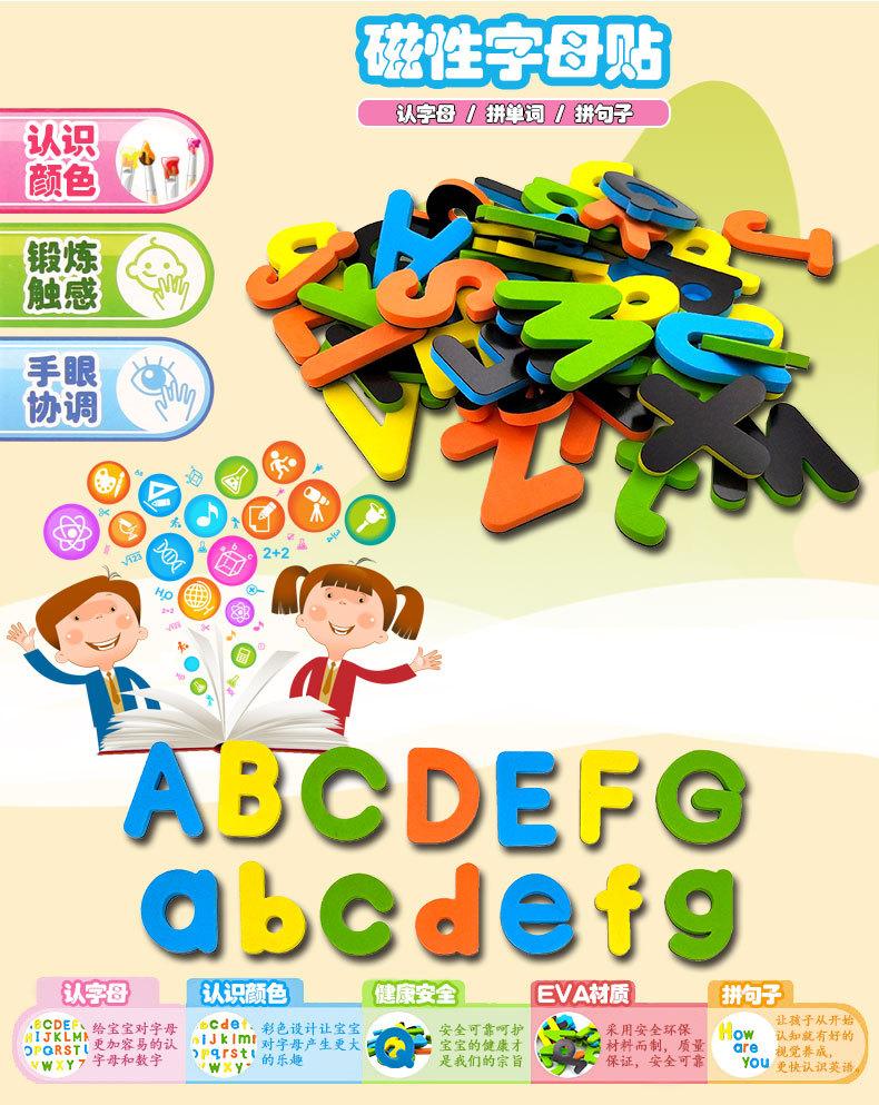 Pegatinas magnéticas para refrigerador con letras mayúsculas y minúsculas en inglés, embalaje sencillo, juguetes educativos para niños de escuela primaria en inglés, material didáctico.