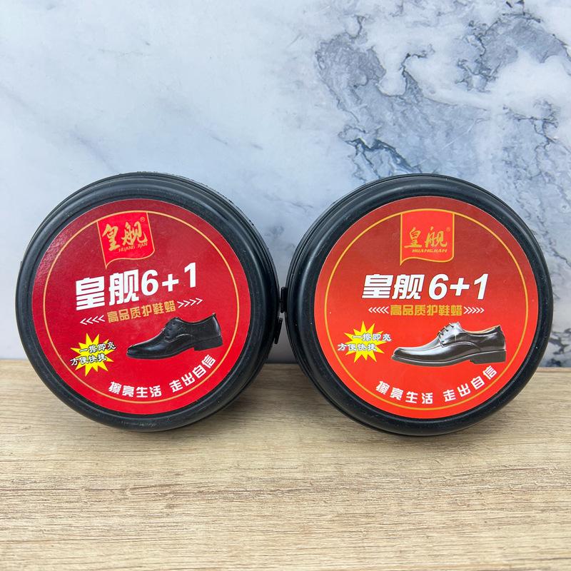 Cera para zapatos Royal Ship 6+1, mantenimiento de zapatos de cuero para el hogar, limpieza y cuidado del betún para zapatos, cera para zapatos, esponja integrada portátil de doble cara.