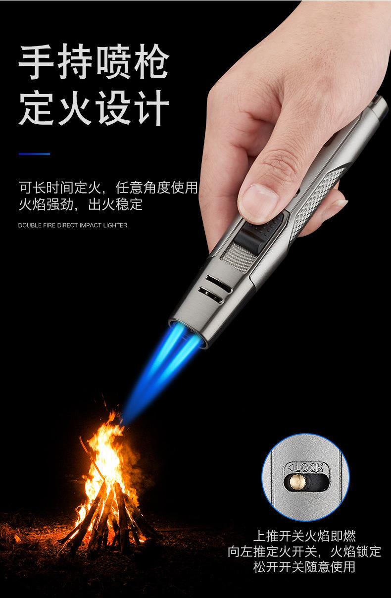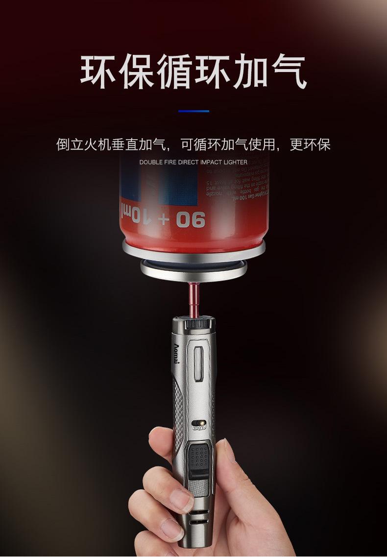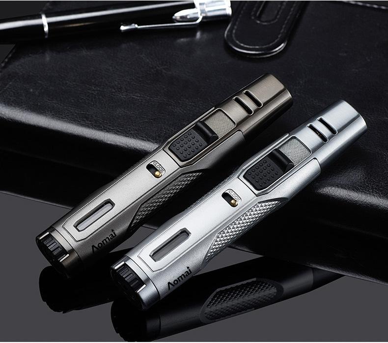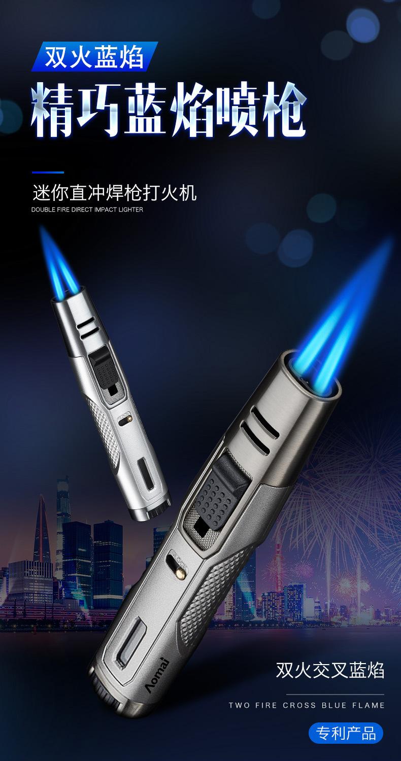Encendedor inflable transfronterizo a prueba de viento, de doble punta, de metal, con llama azul y punta de cigarro, repelente de mosquitos de carbono, para uso doméstico AM7305