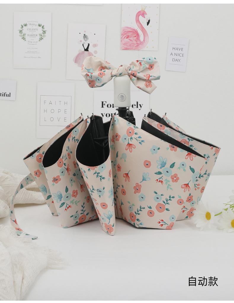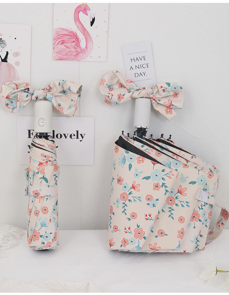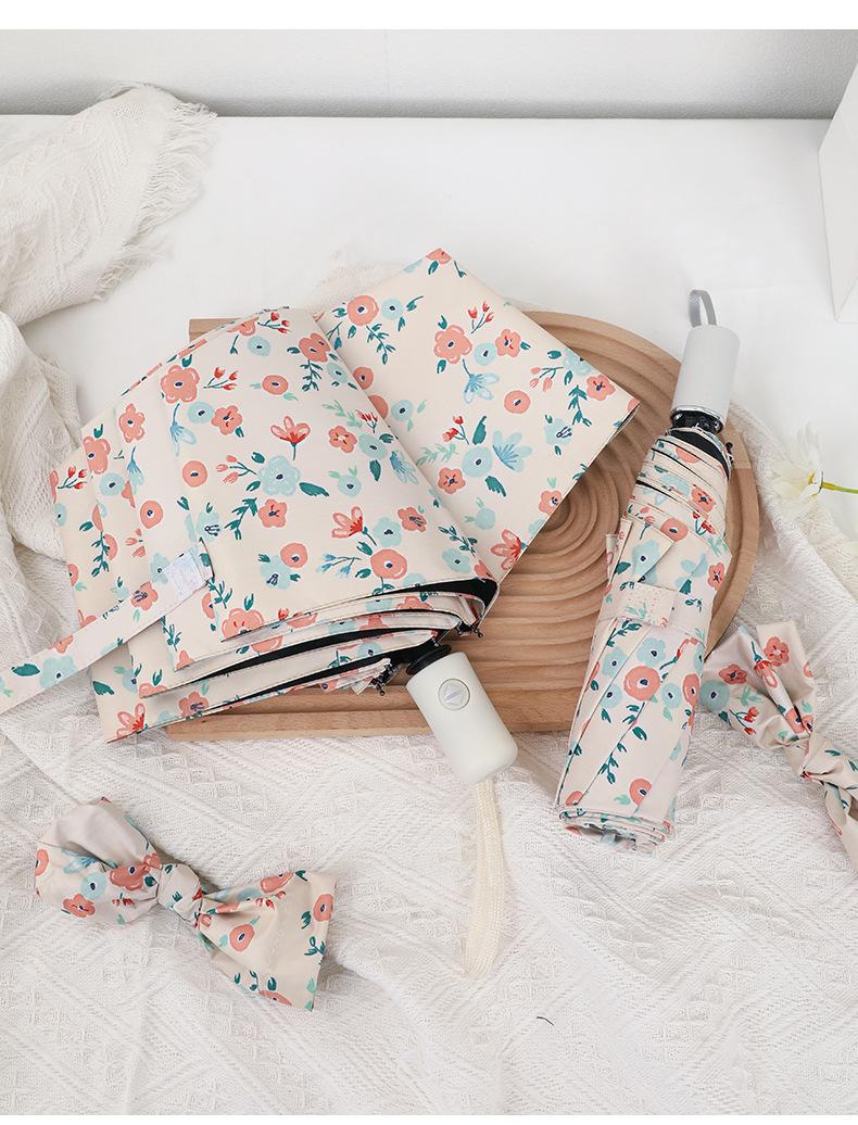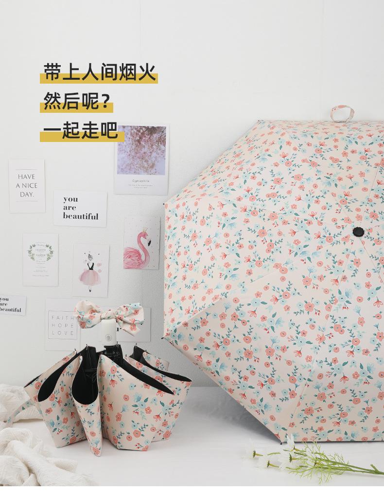 Paraguas, Paraguas de Sol Anti-UV, Sombrilla, Paraguas Plegable, Pequeña Flor Amarilla de Vinilo Fresco, Paraguas para Lluvia o Sol