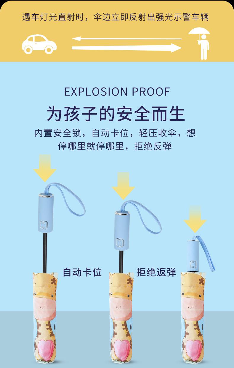 Paraguas Infantil de Dibujos Animados Anti-Rebote Sección de Seguridad Paraguas Automático Estudiante Paraguas de Sol Lluvia o Sol Protección Solar