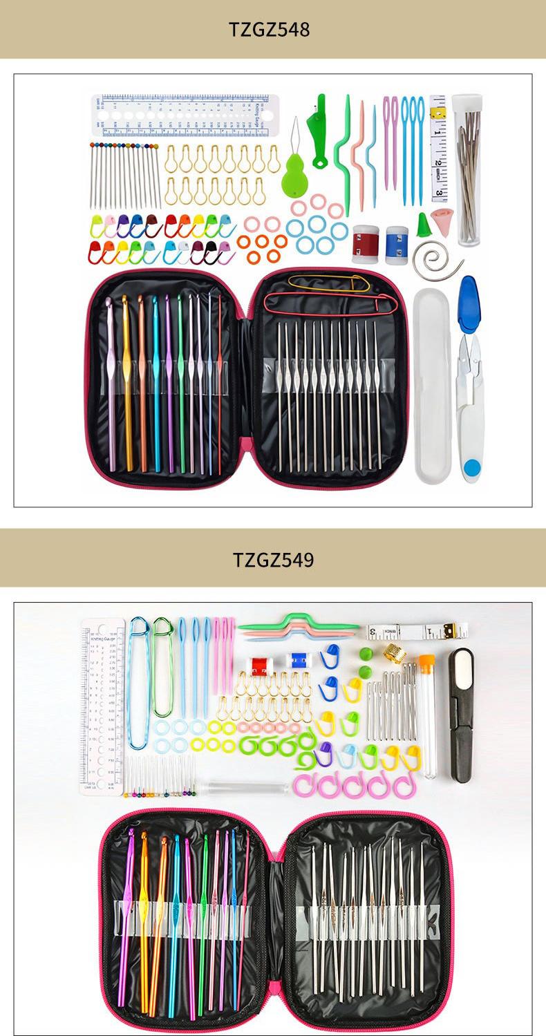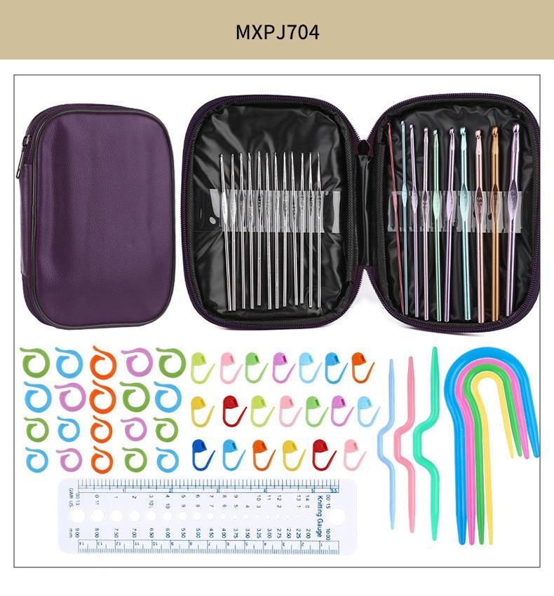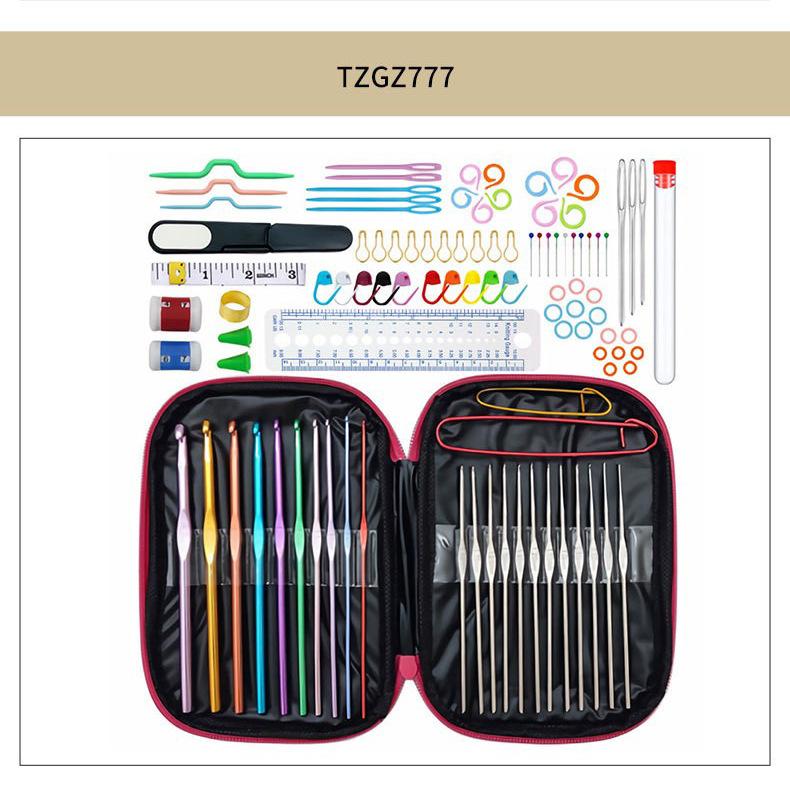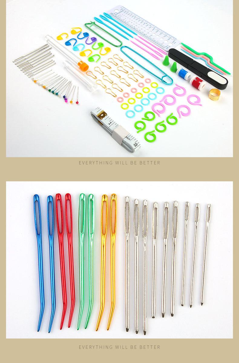 Nuevo paquete combinado de traje de crochet de metal, lana de alúmina de color, crochet de varias piezas, herramientas de tejido, juego de 100 piezas