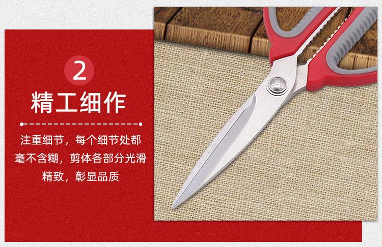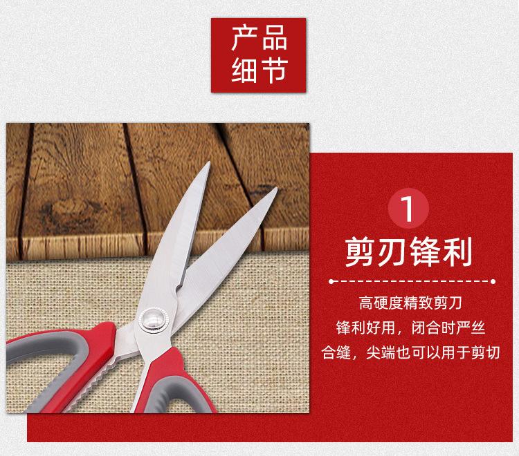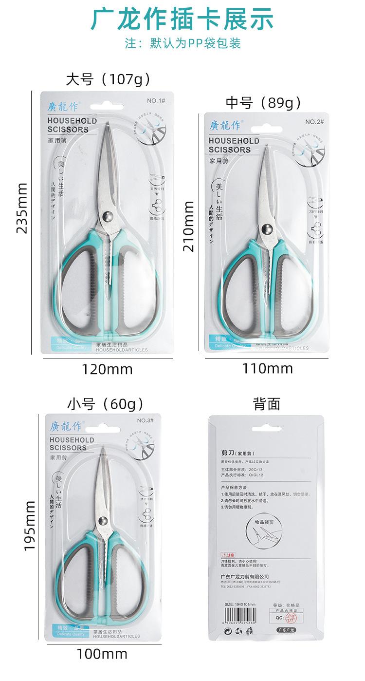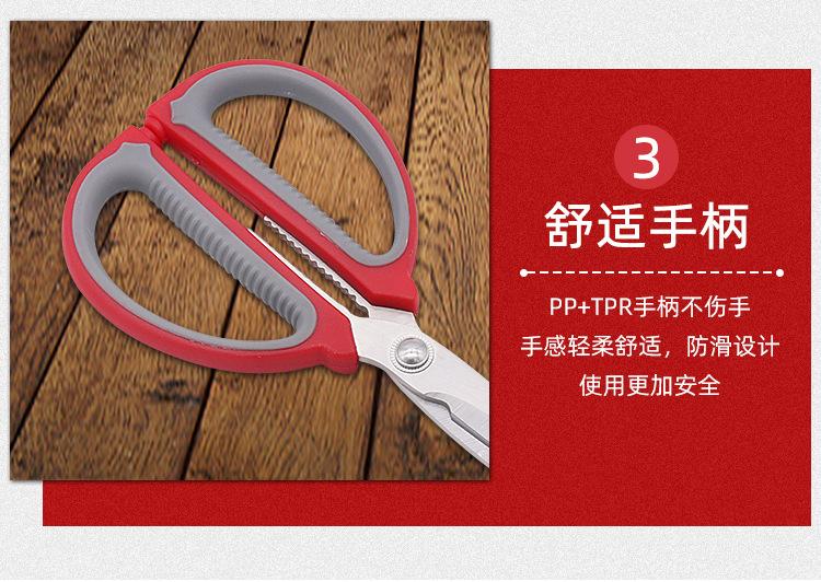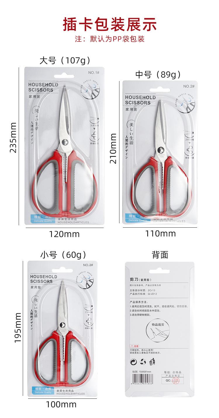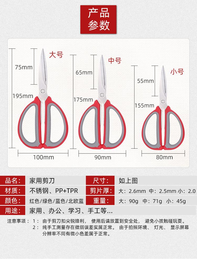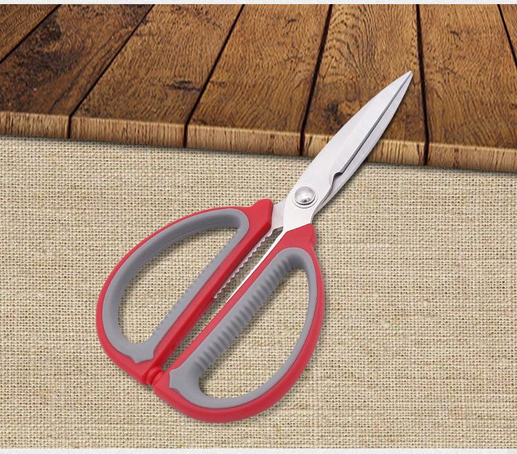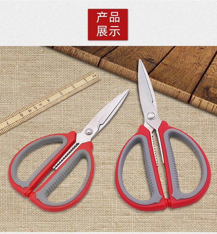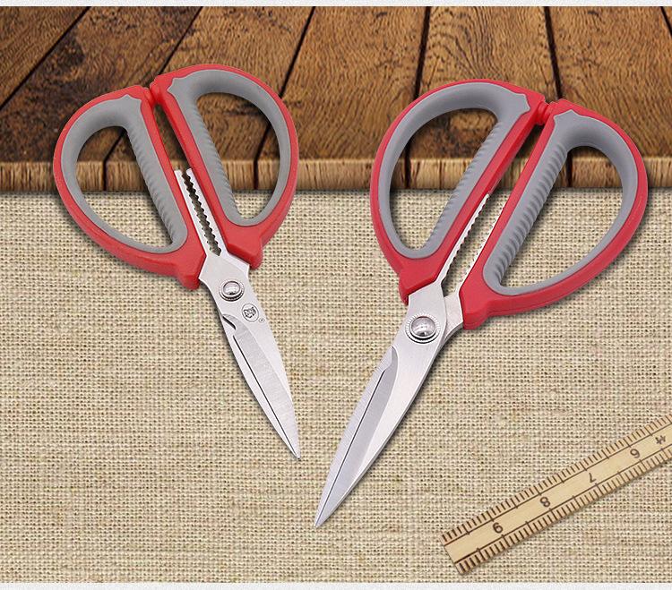 Tijeras de acero inoxidable para el hogar, venta al por mayor de fábrica, tijeras civiles con mango de goma de doble color, tijeras multiusos para cocina y alimentos.