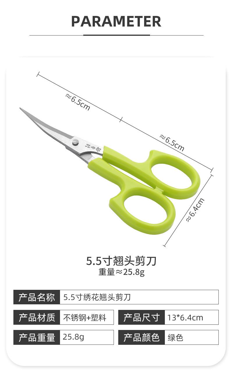 Hilo de punto de cruz verde de 5.5 pulgadas Wang Wuquan codo de acero inoxidable cortado tijeras pequeñas tijeras de bordado a mano