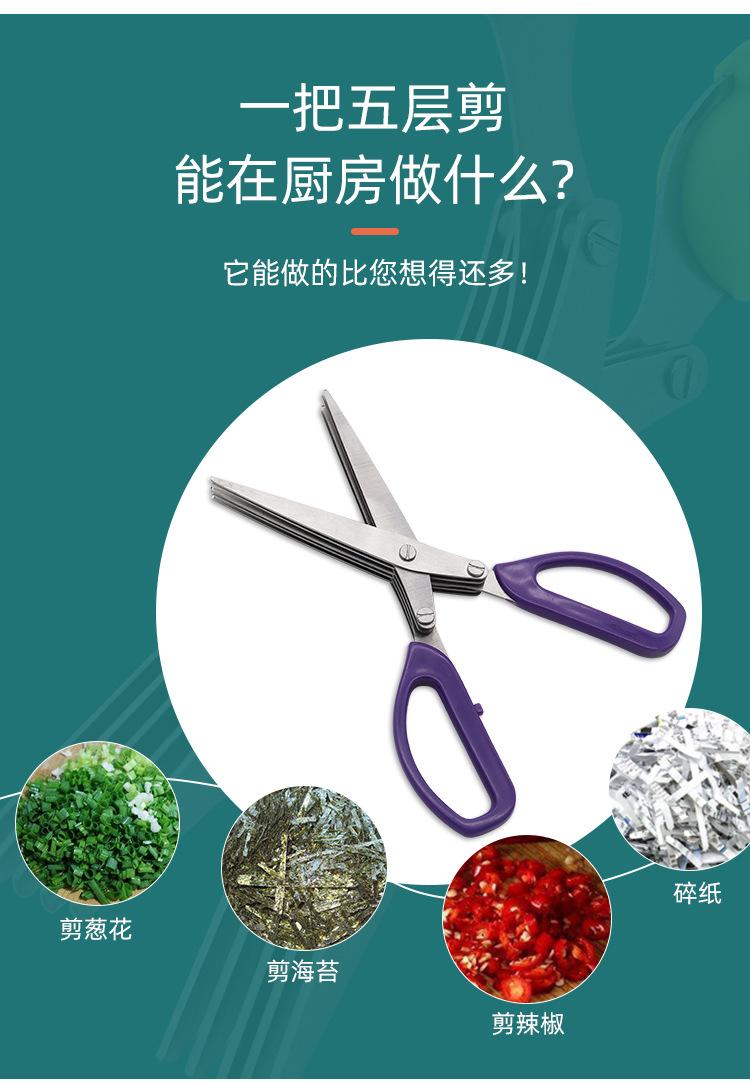 Venta al por mayor de fábrica tijeras de cebolla multicapa para el hogar tijeras de cinco capas tijeras de oficina para triturar papel tijeras de cebolla de acero inoxidable