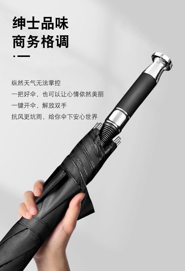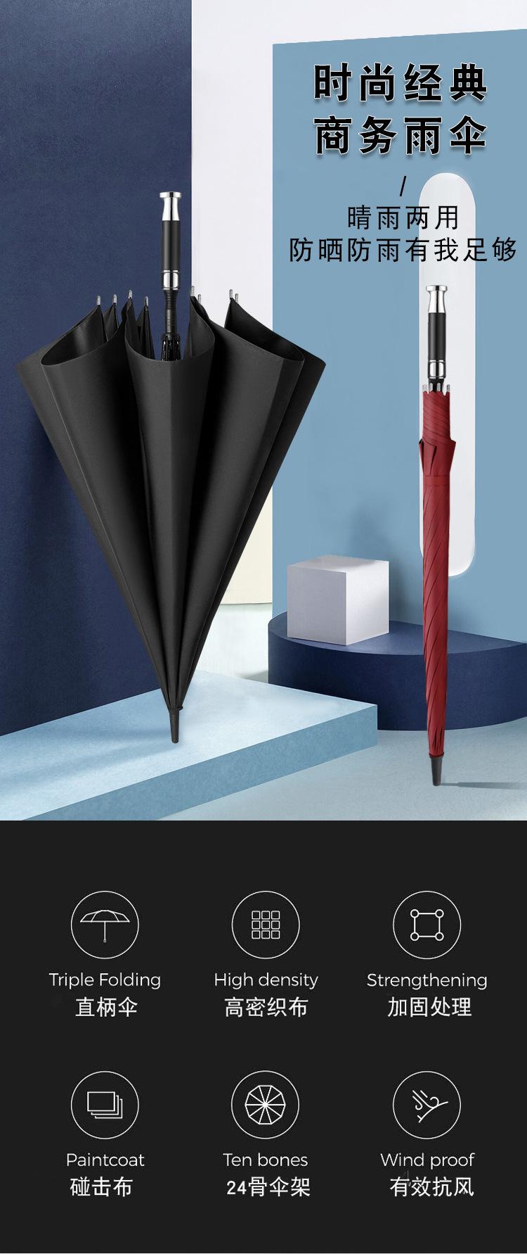 Paraguas de doble uso para hombre, con mango largo y varilla recta, resistente al viento y a la lluvia, ideal para regalo, publicidad, negocios, de fibra negra.