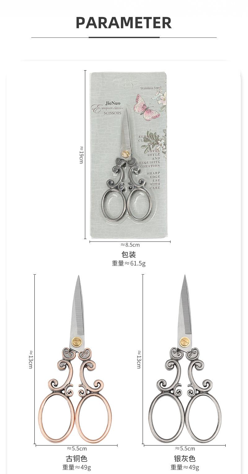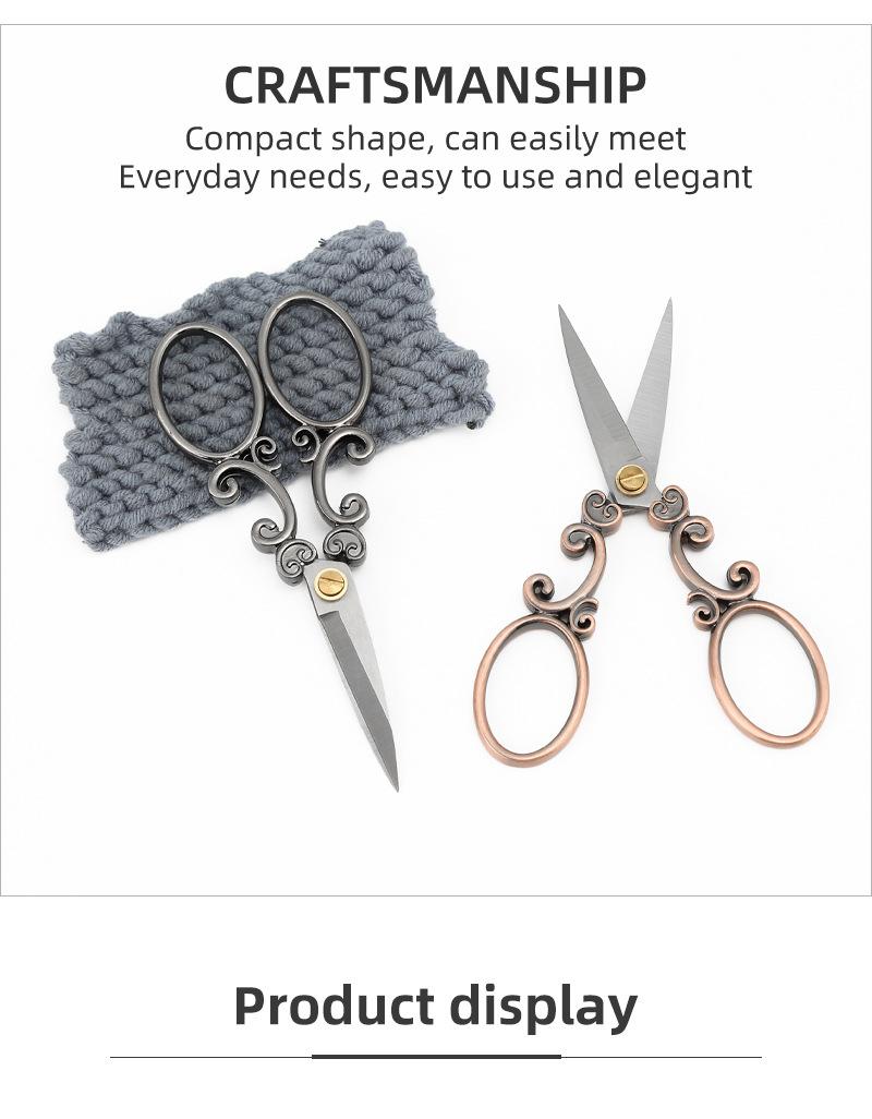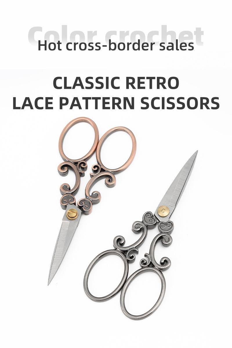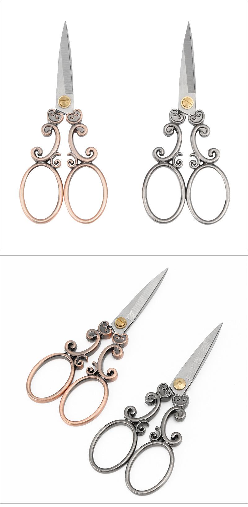 Tijeras de patrón retro de estilo europeo transfronterizo bronce plateado gris tijeras de bordado para el hogar tijeras para bolsitas de té tijeras para cabeza de hilo de coser