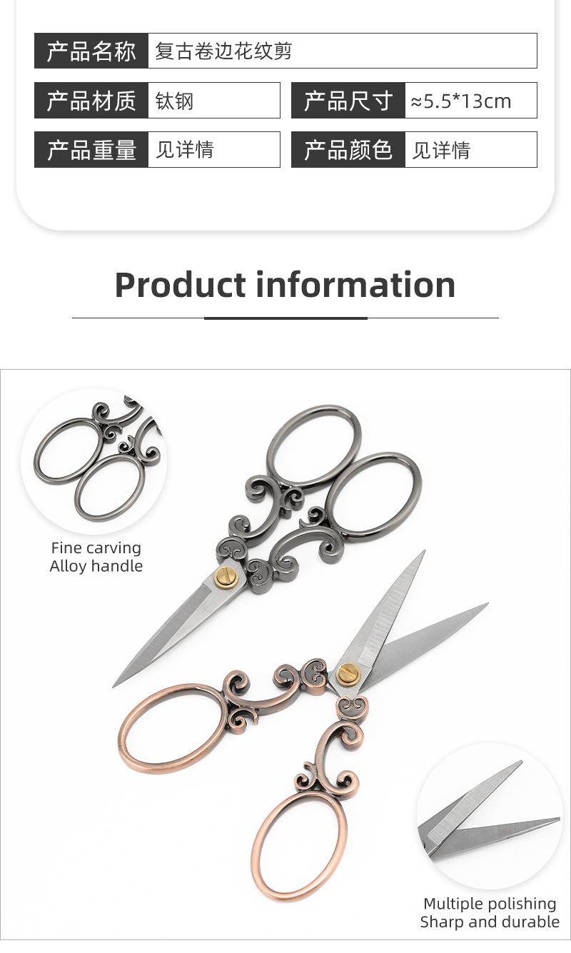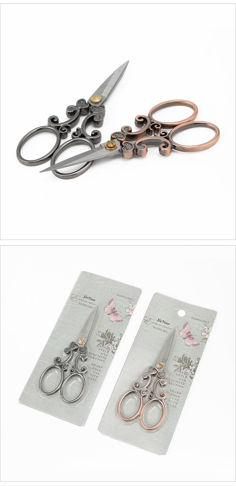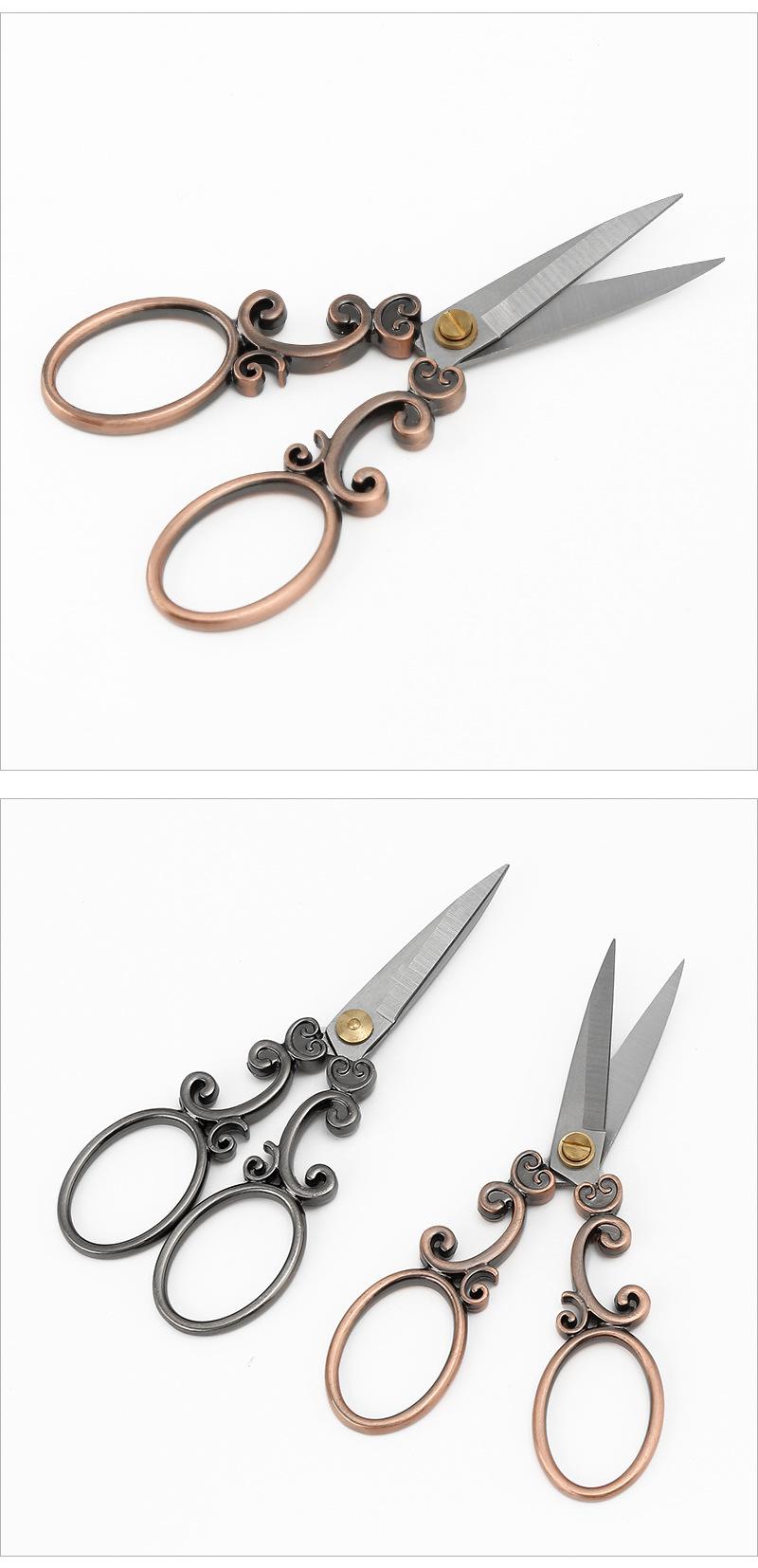Tijeras de patrón retro de estilo europeo transfronterizo bronce plateado gris tijeras de bordado para el hogar tijeras para bolsitas de té tijeras para cabeza de hilo de coser