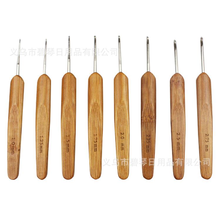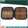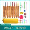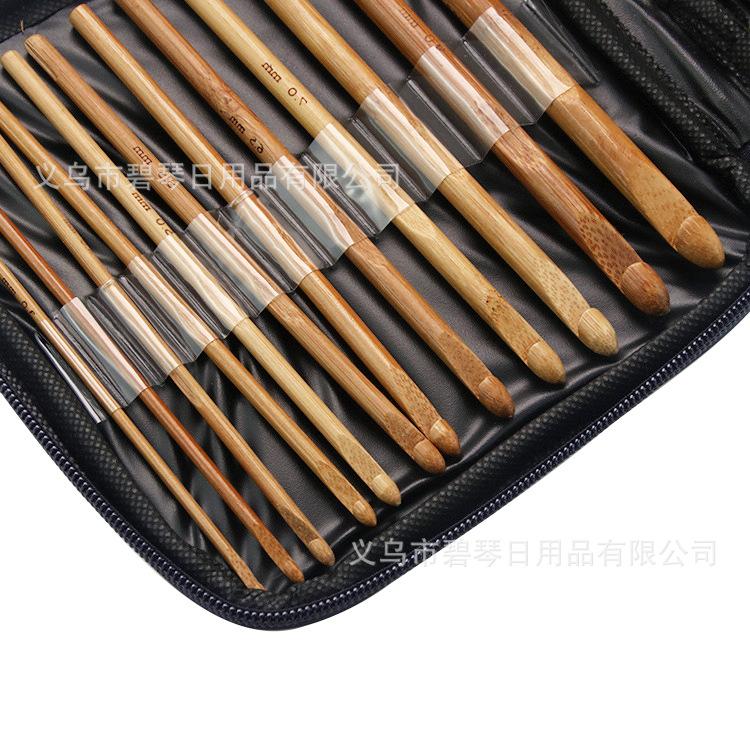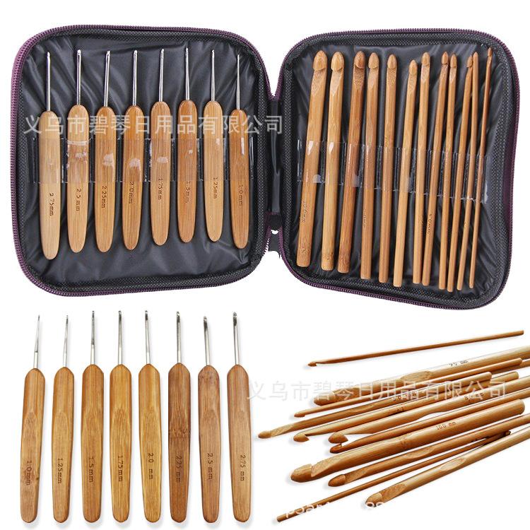 Herramienta de tejido DIY, aguja para suéter, mango de bambú carbonizado, bolsa de crochet redonda morada, juego de 20 piezas de crochet de bambú, embalaje de PU