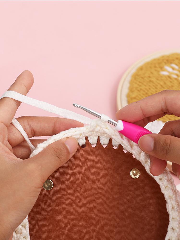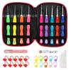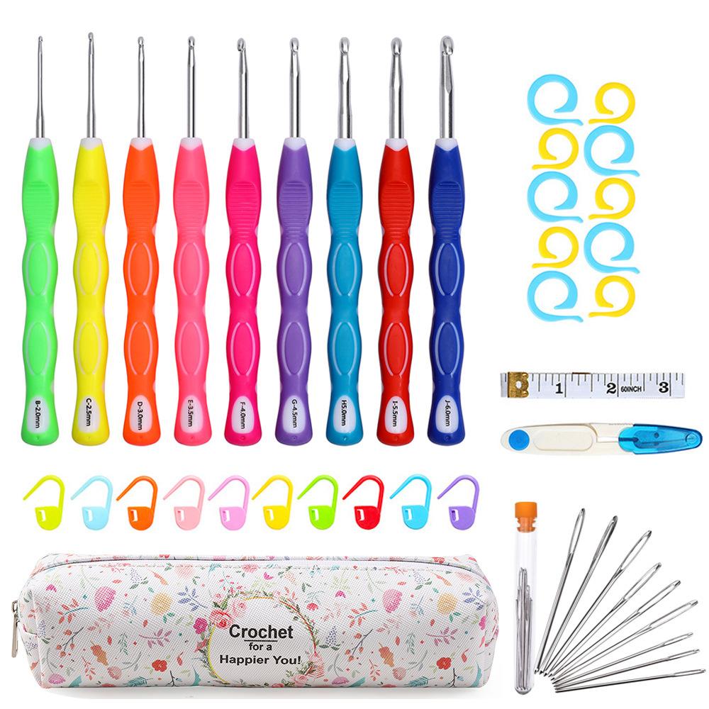 Ch126 crochet hook + bag + accessories, White floral pencil case, 9 e style two-color crochet hooks + accessor...