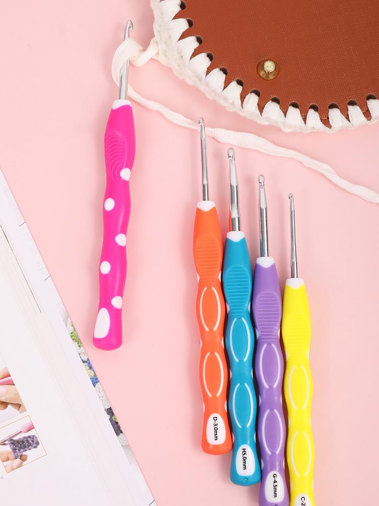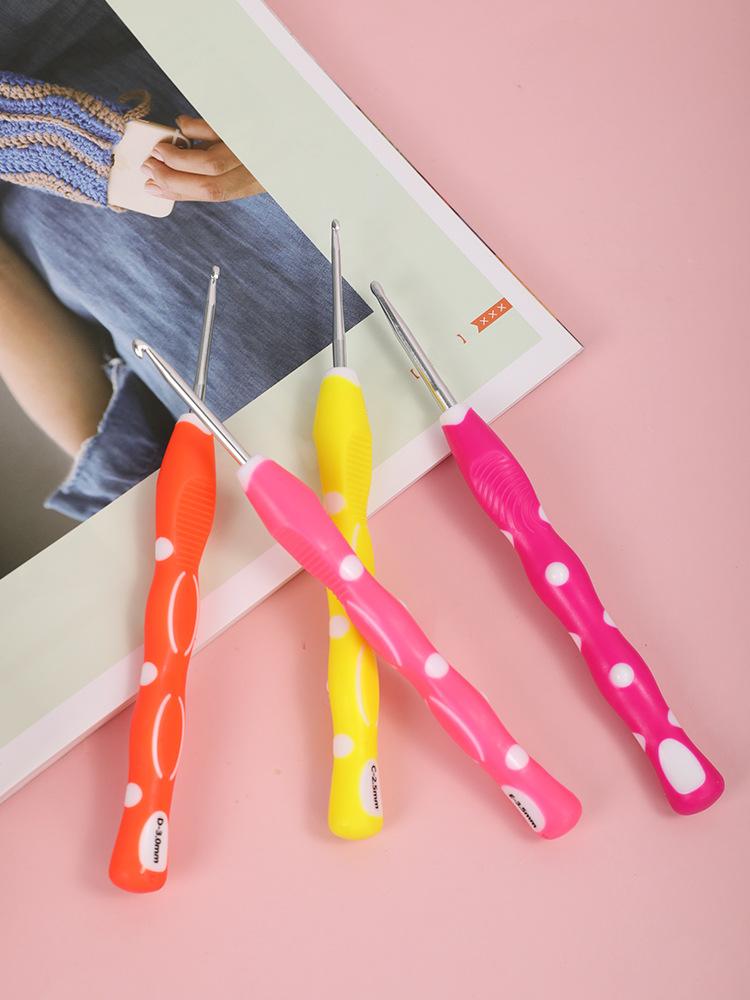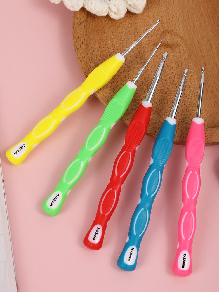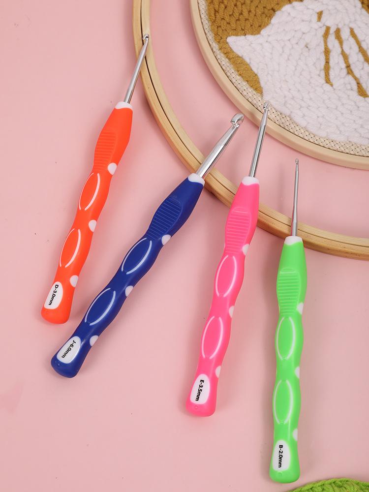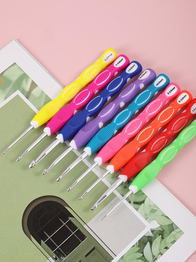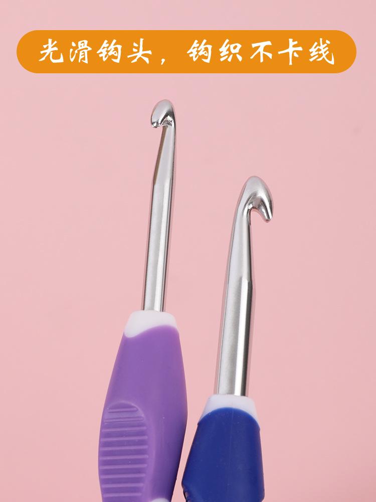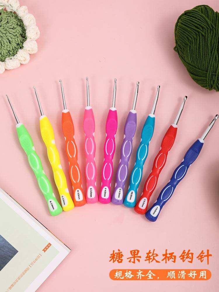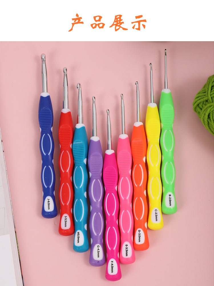 Combinación de colores transfronteriza Gancho de mango suave plano E Mango de plástico bicolor Ganchillo de aluminio Mango TPR Traje de ganchillo extendido