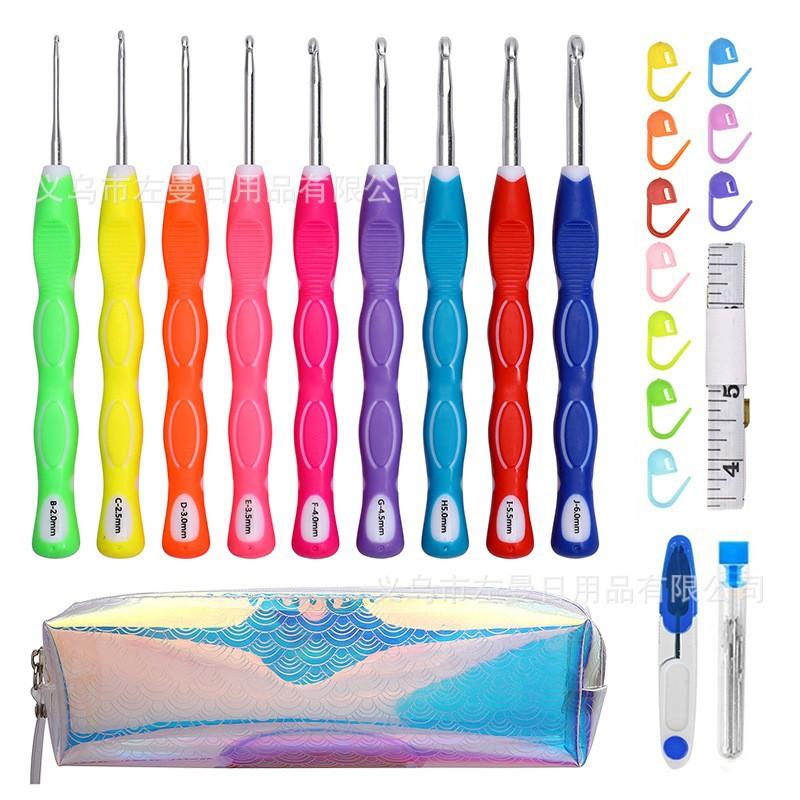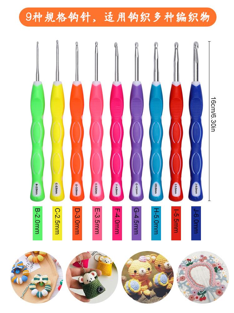 9 e-type two-color crochet hooks + accessories [blister pack]