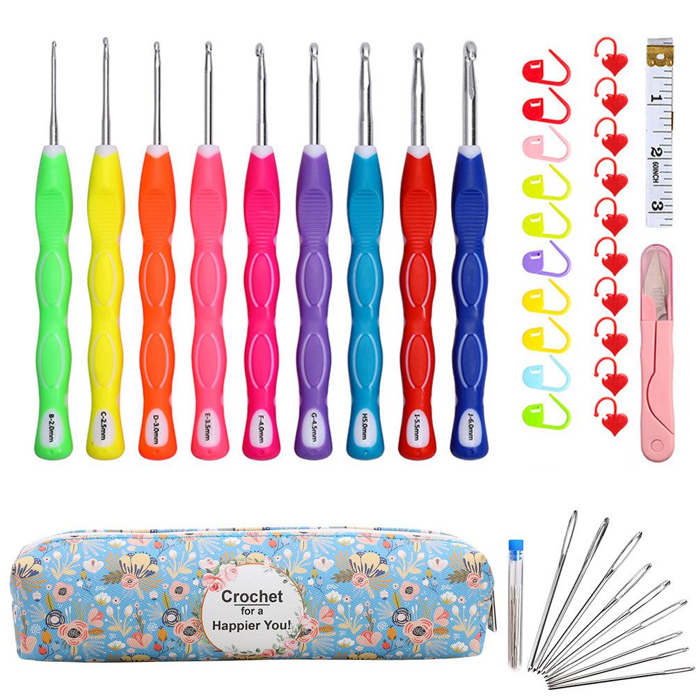 9 e style two-color crochet hooks + accessories [blue floral pencil case]