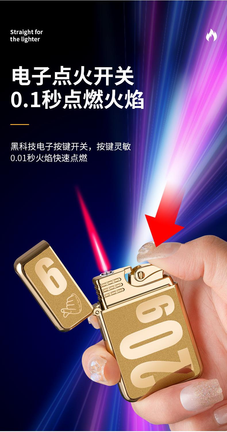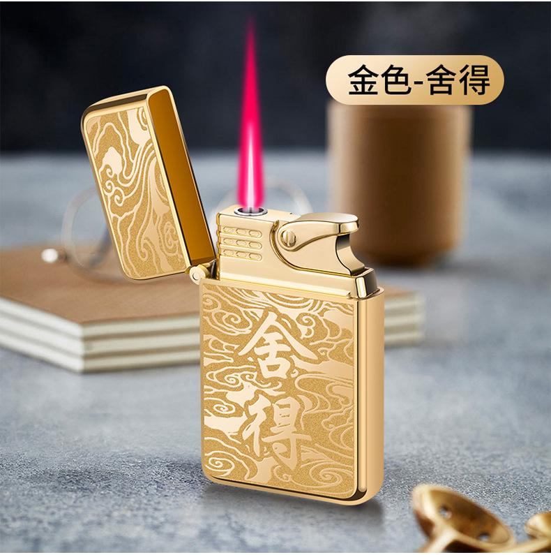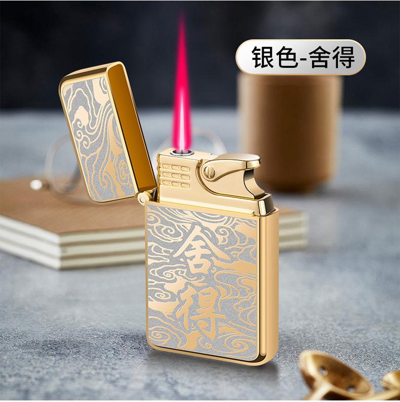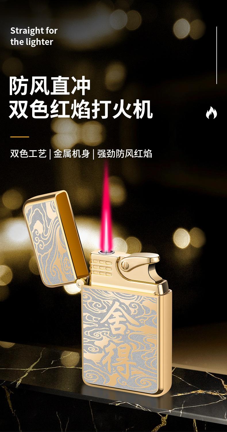Encendedor inflable creativo de metal AB863 a prueba de viento TikTok Net con personalidad de llama roja, regalo de moda para hombres para su novio