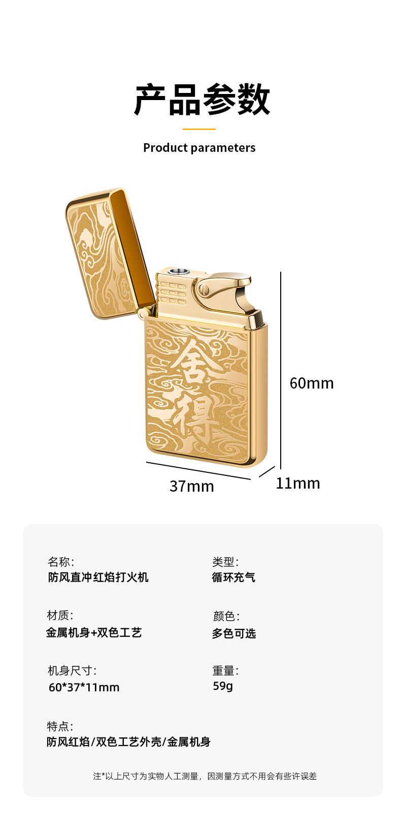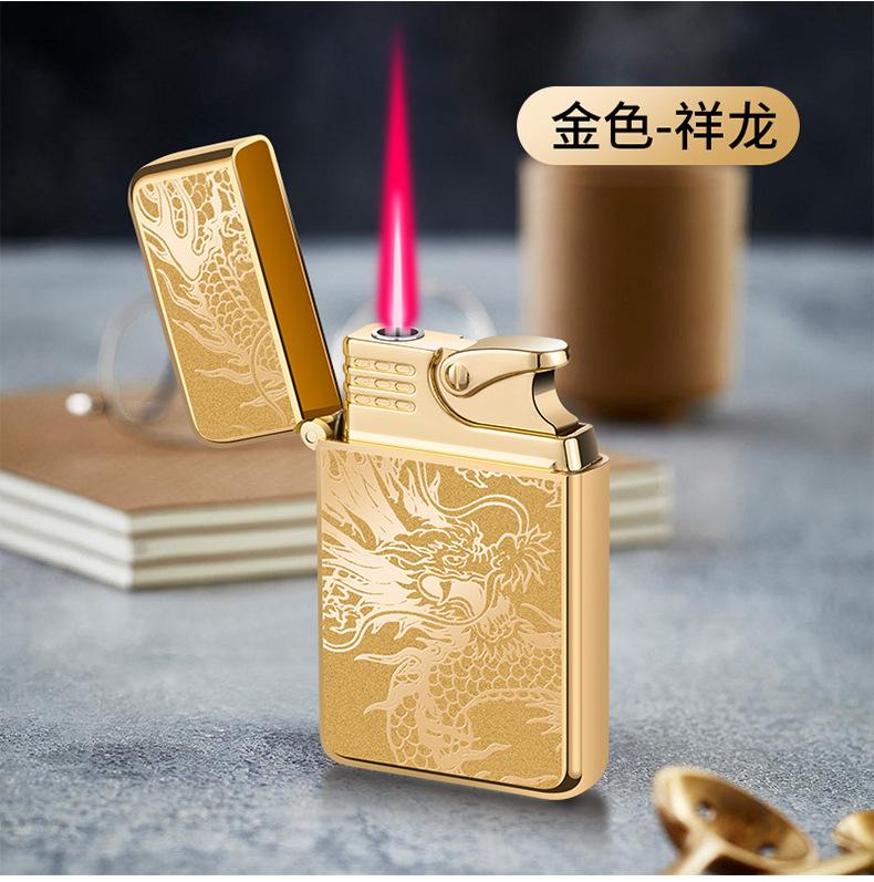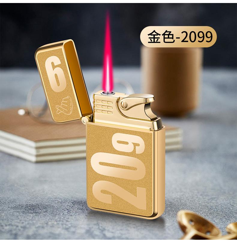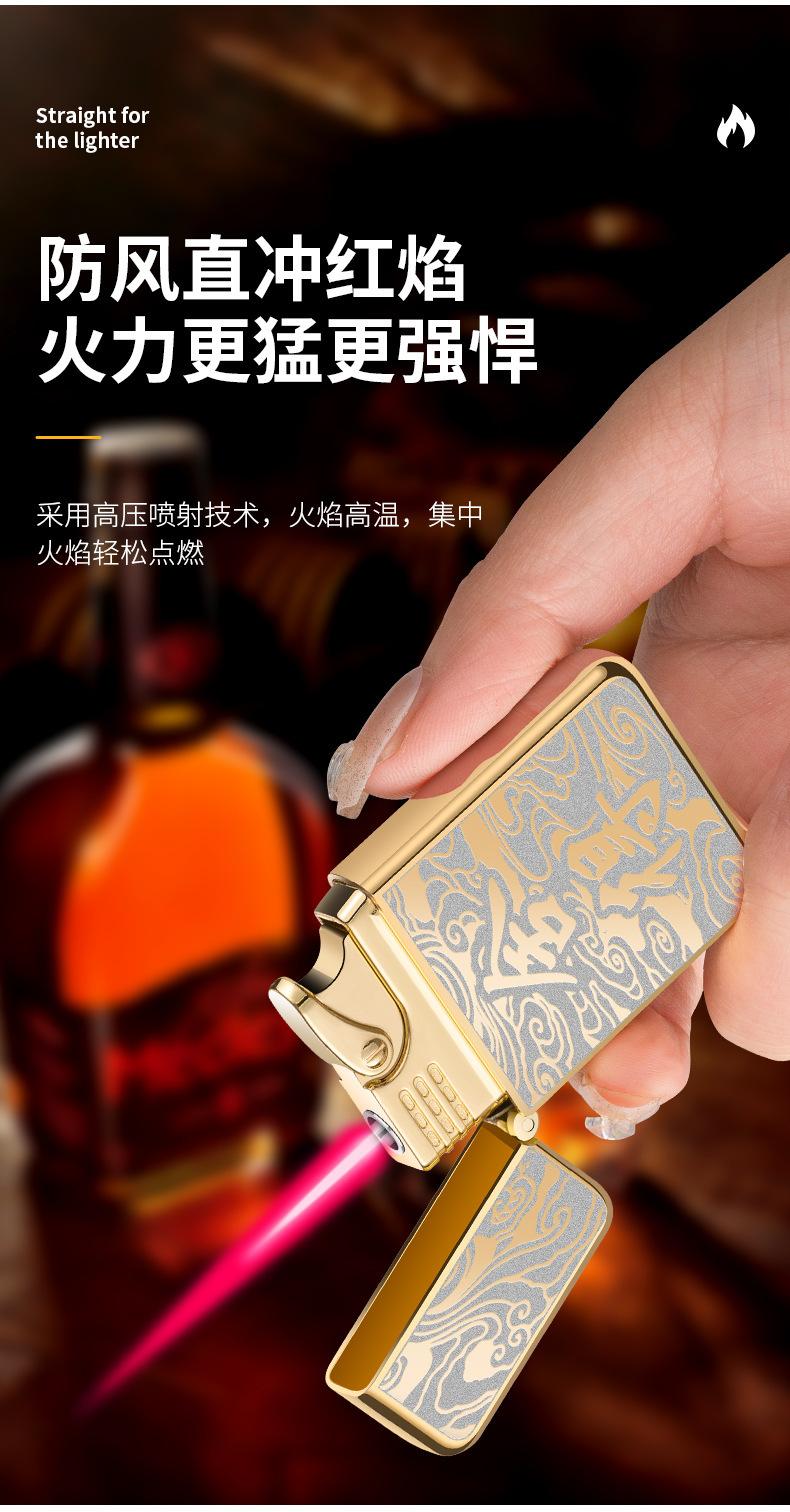 Encendedor inflable creativo de metal AB863 a prueba de viento TikTok Net con personalidad de llama roja, regalo de moda para hombres para su novio
