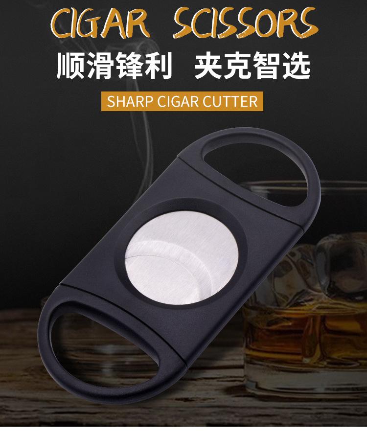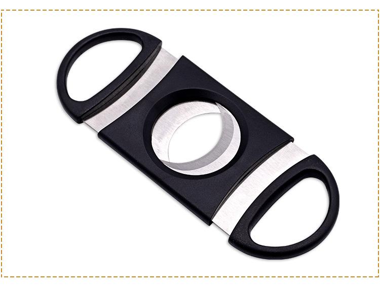 Tijeras para puros de acero inoxidable al por mayor de fábrica, tijeras para puros de metal de doble filo con personalidad negra en forma de V