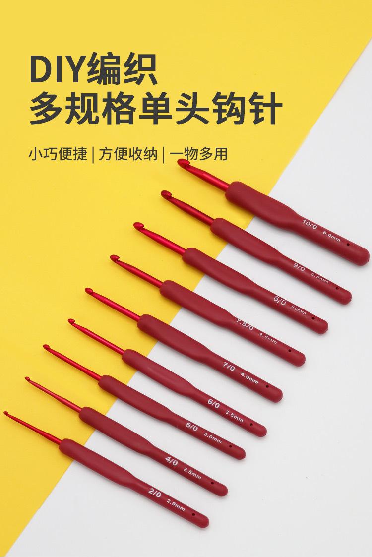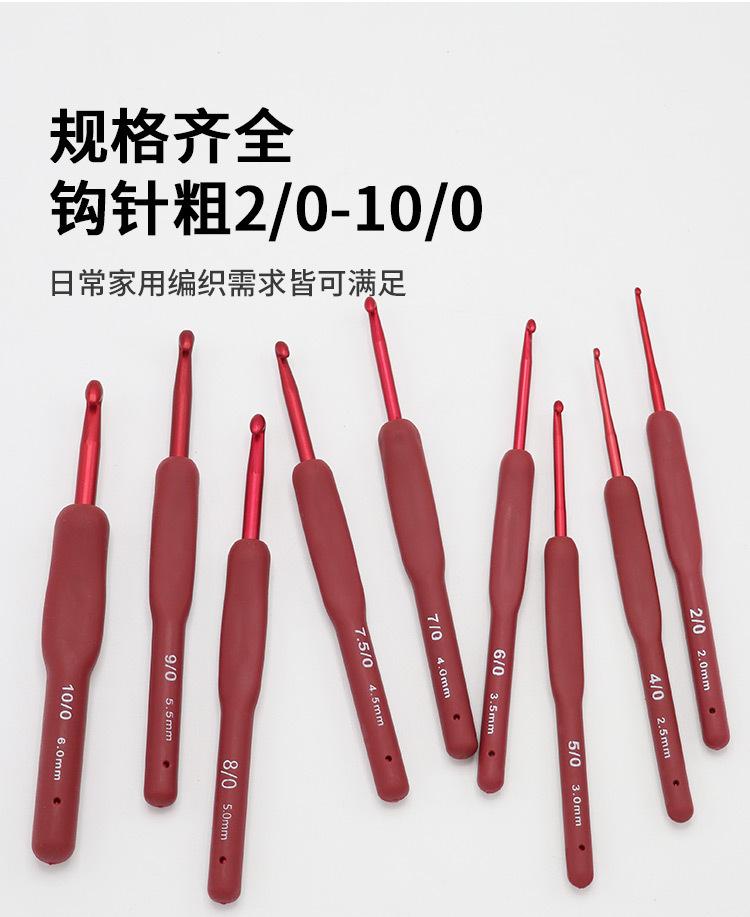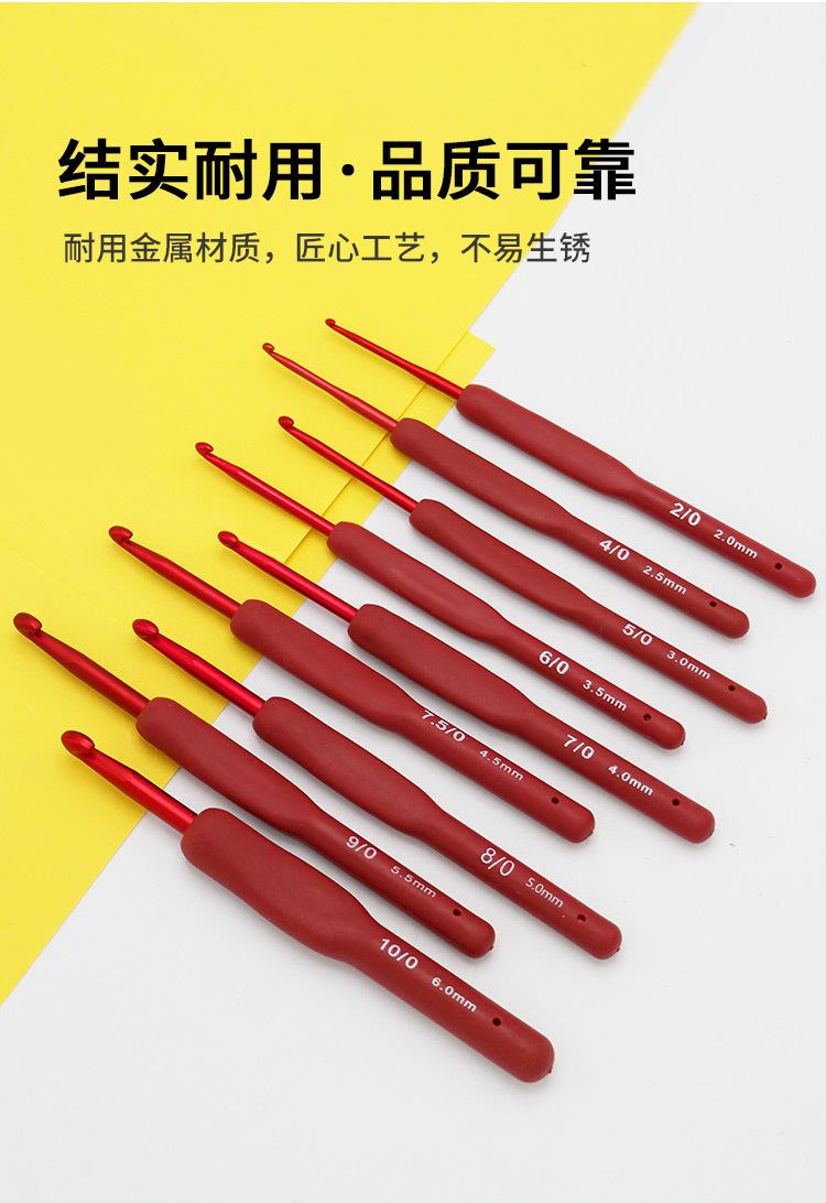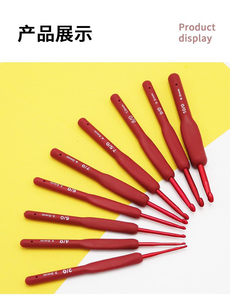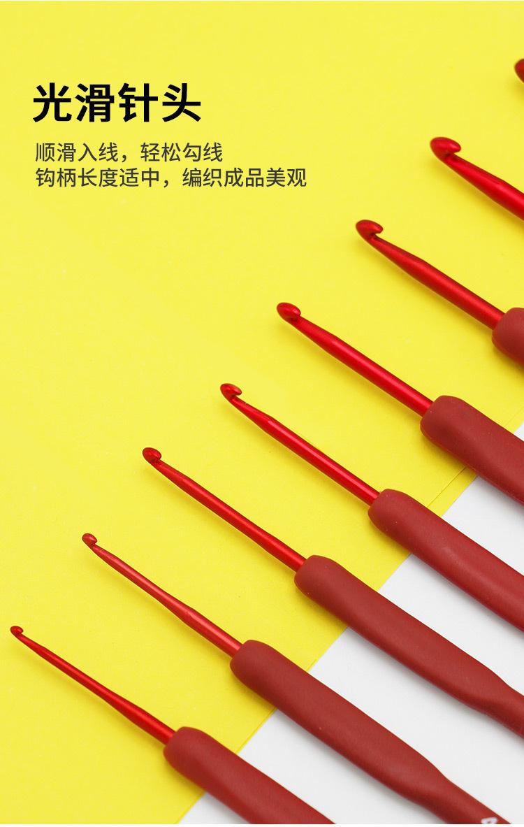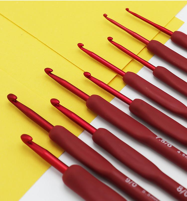 Herramienta de crochet roja para tejer a mano, bolsa de agujas de lana de crochet de alúmina, silicona antideslizante