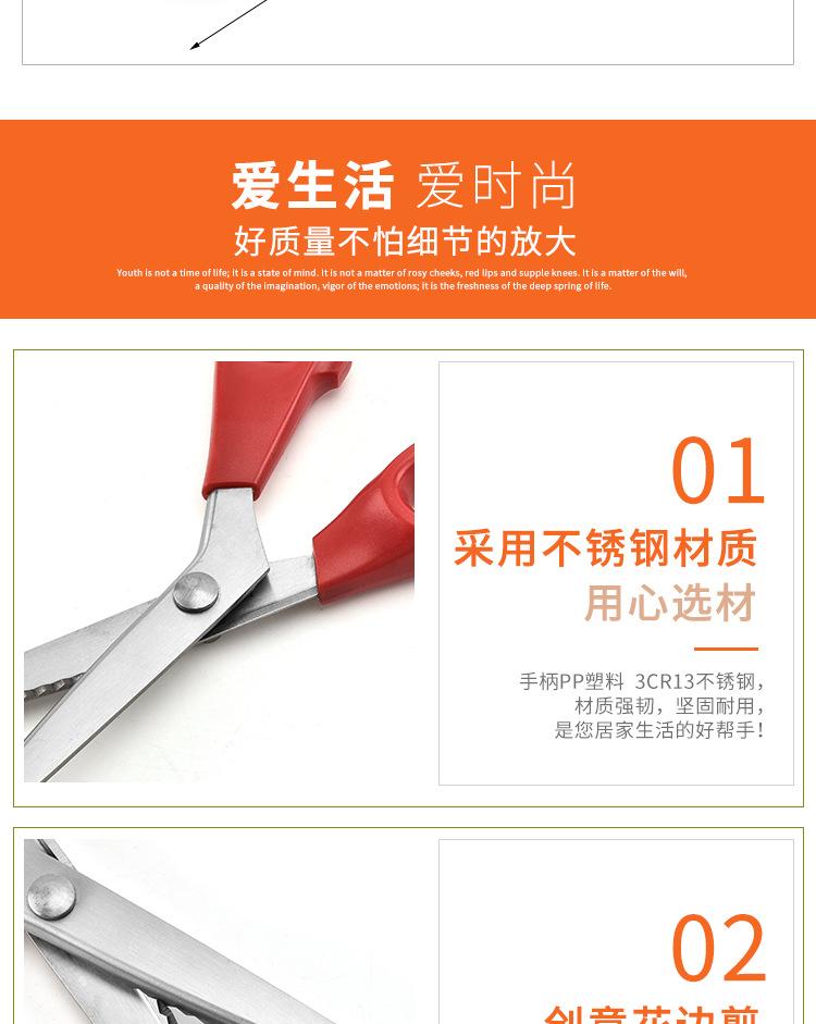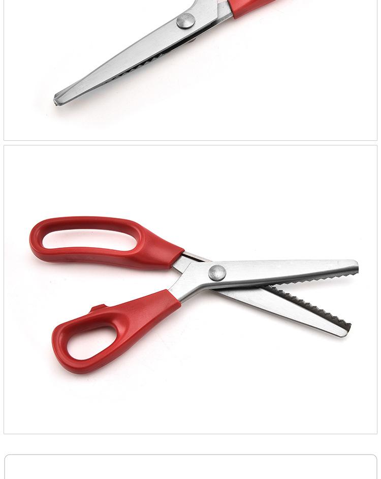 Venta al por mayor de fábrica tijeras de tela para dientes ropa sastre tela encaje tijeras dentadas diente de lobo tijeras patrón de onda tijeras para embalaje