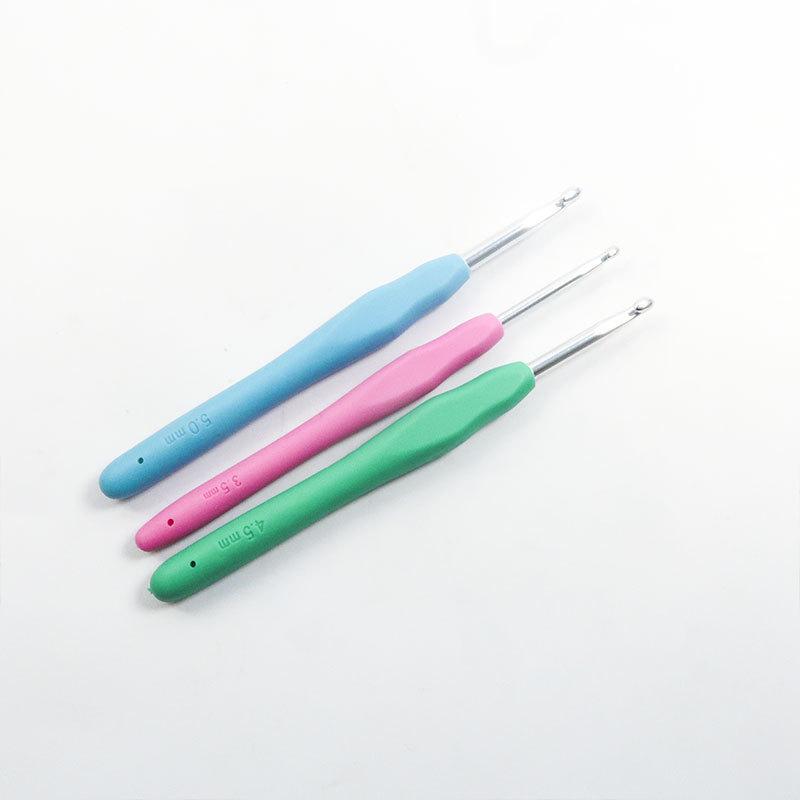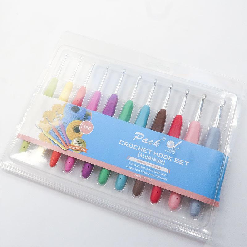 11 aluminum crochet hooks with rubber handles (packed with suction cards)