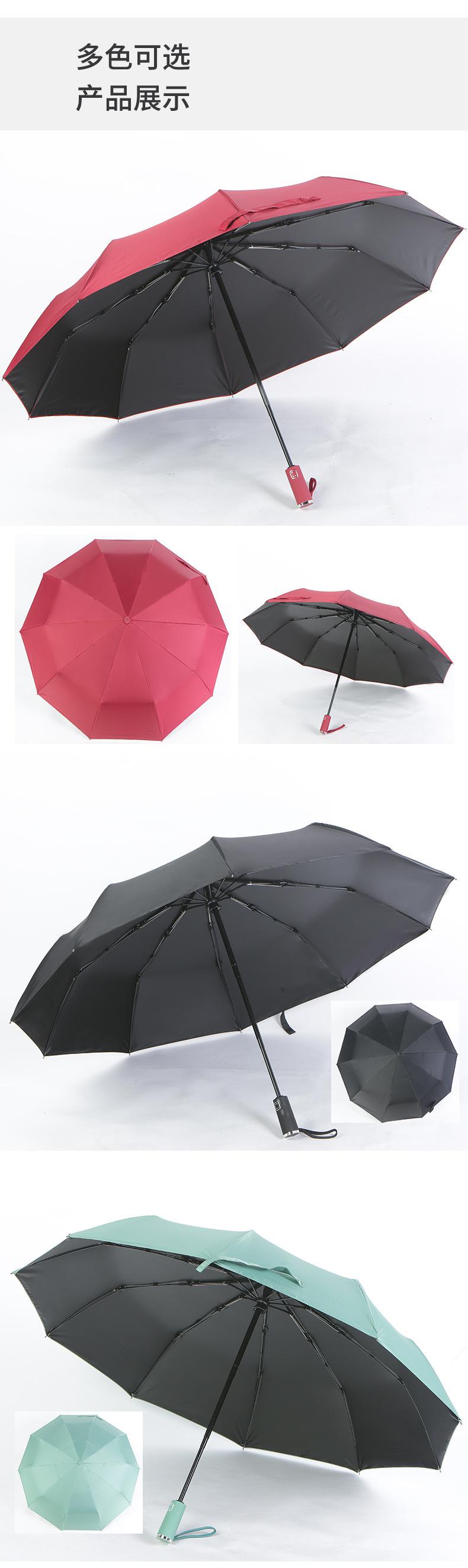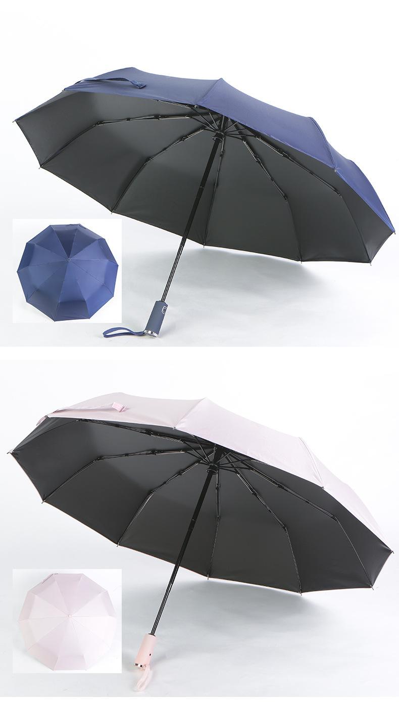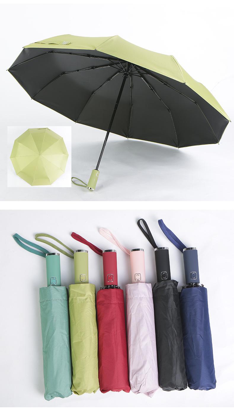 Paraguas plegable de tres pliegues, totalmente automático, de goma negra, de 10 hojas, para publicidad y negocios.