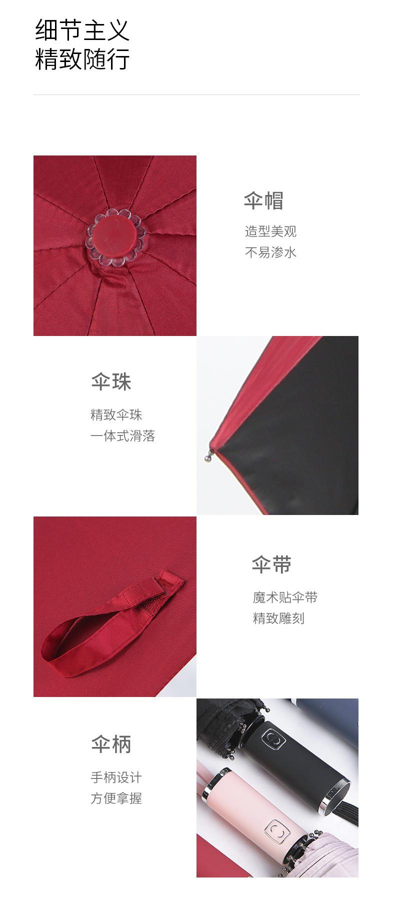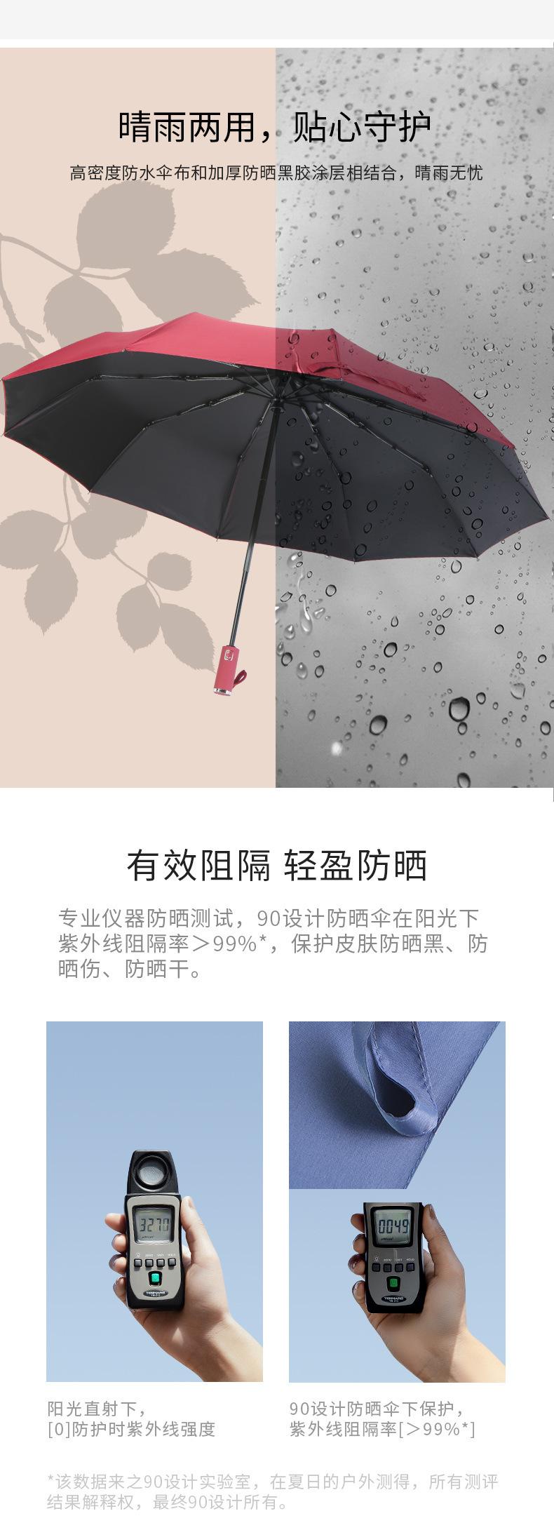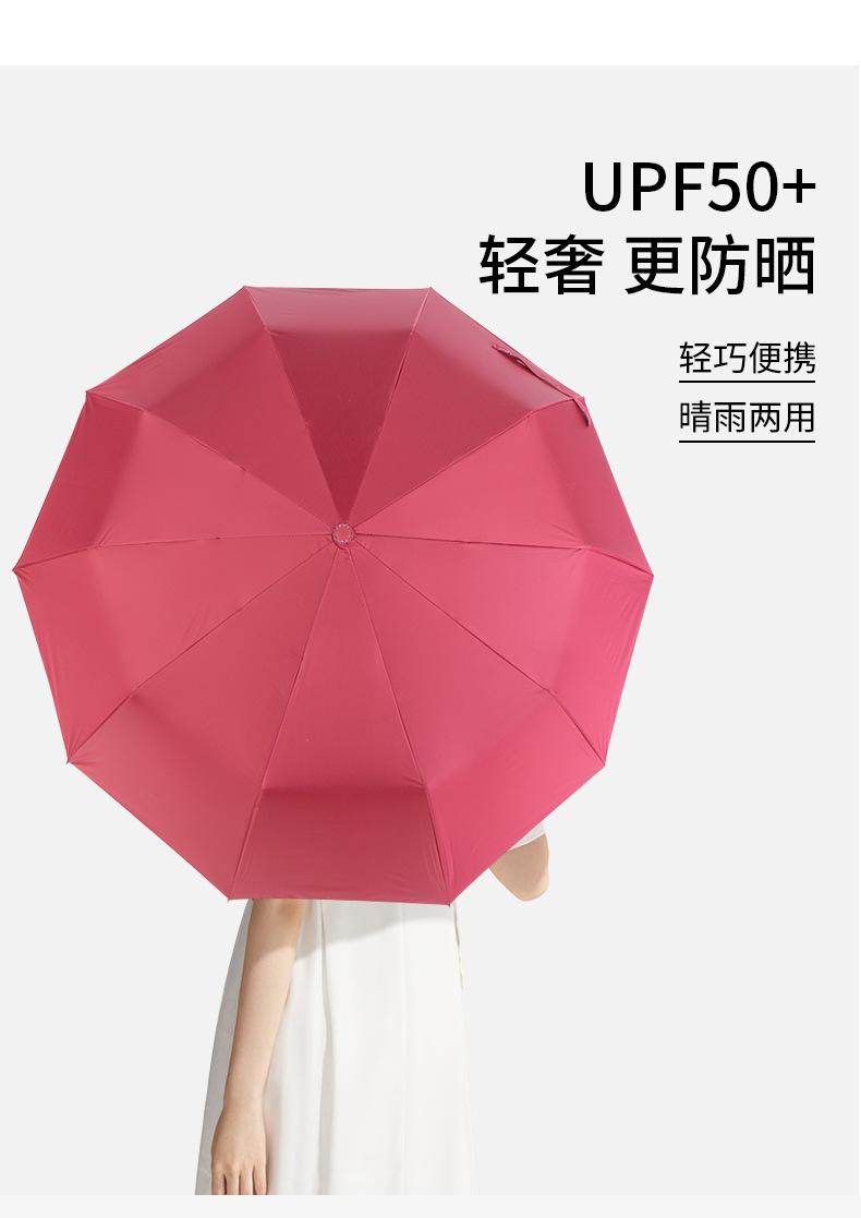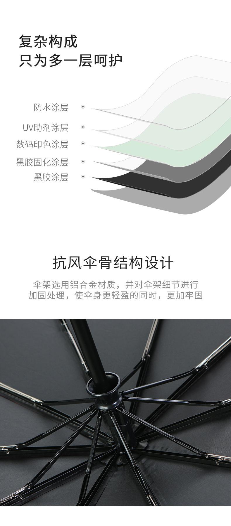 Paraguas plegable de tres pliegues, totalmente automático, de goma negra, de 10 hojas, para publicidad y negocios.