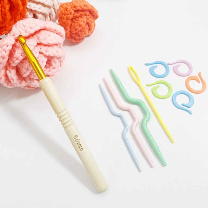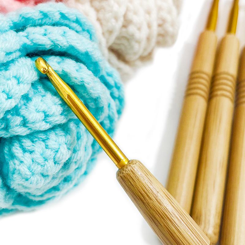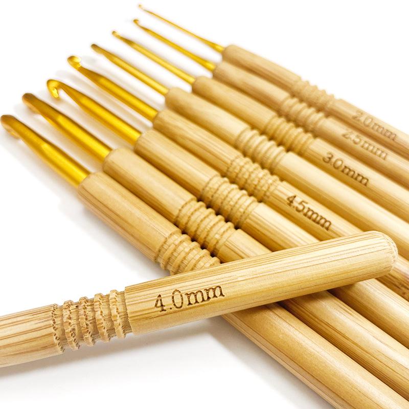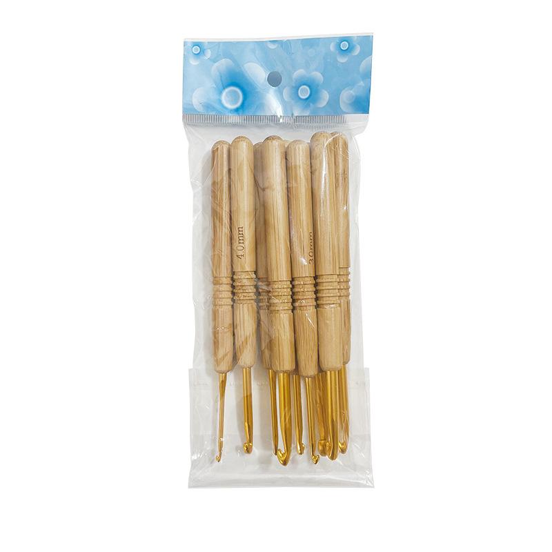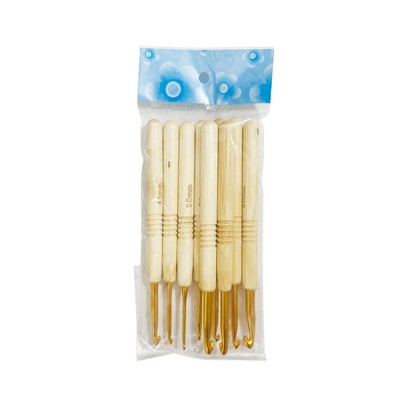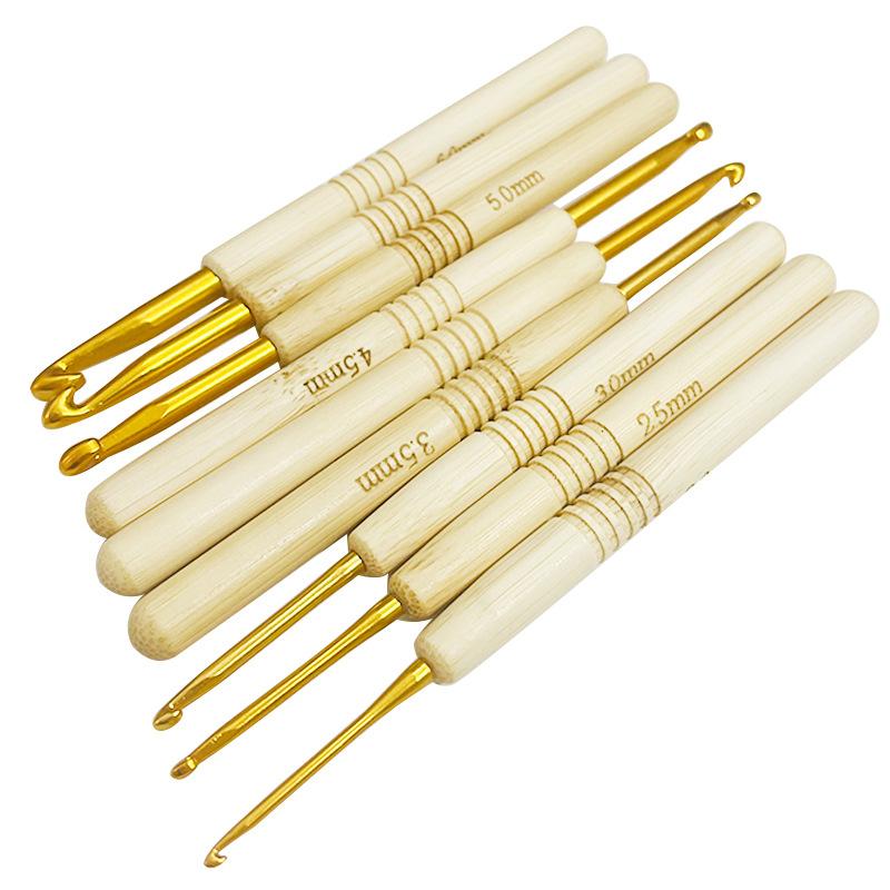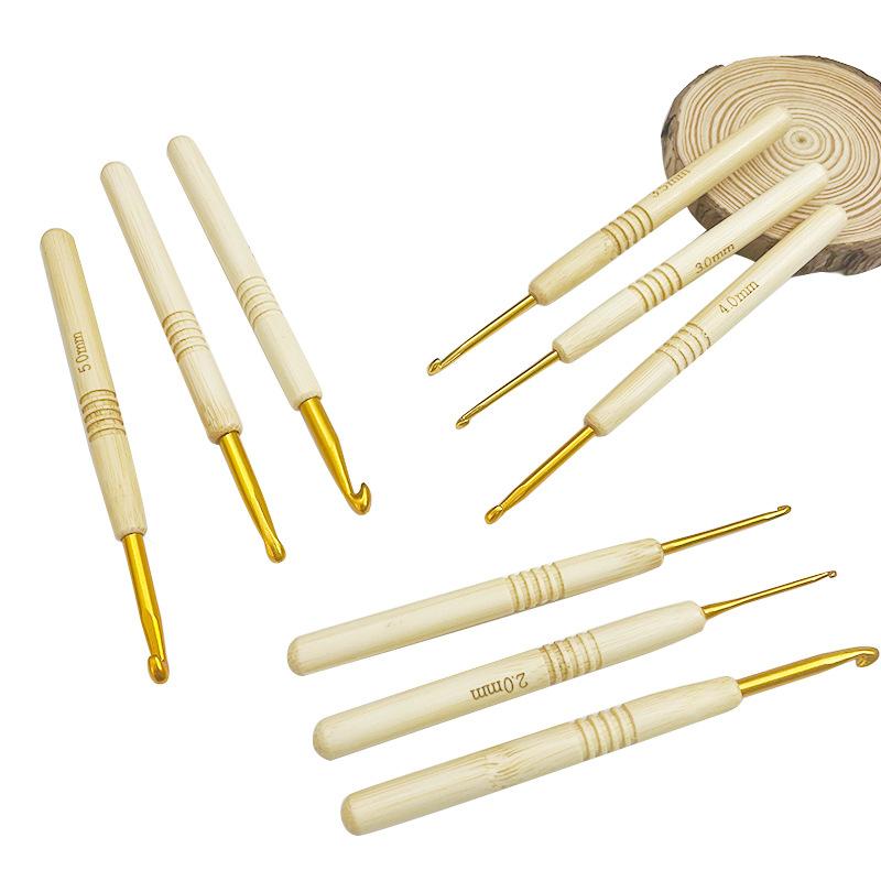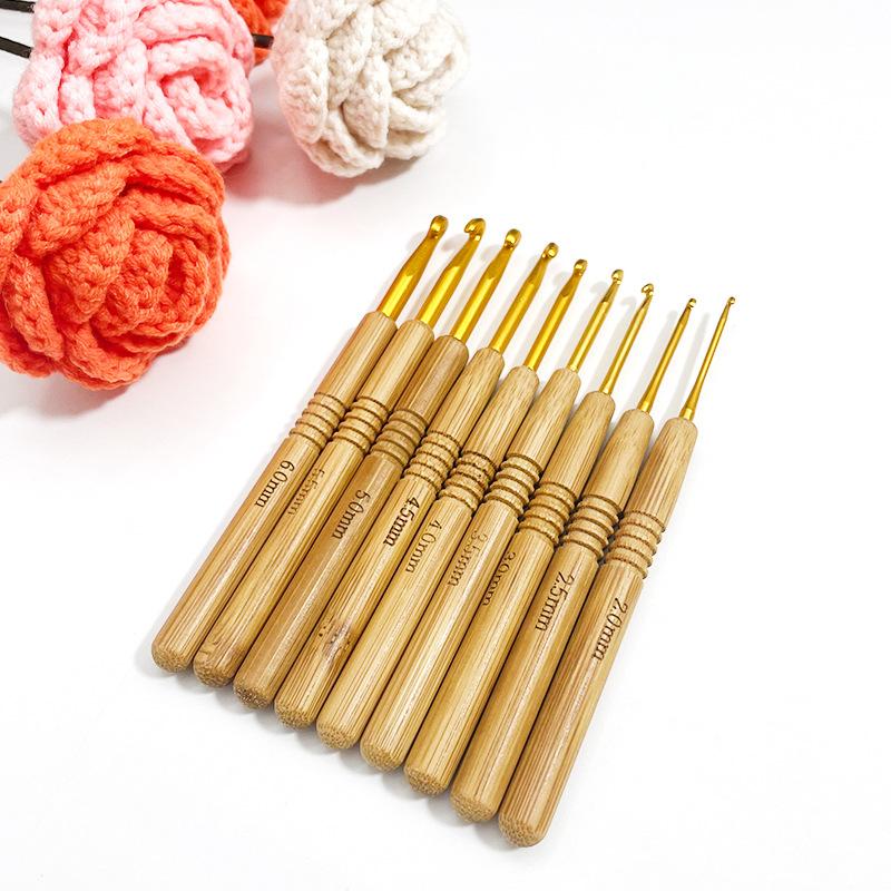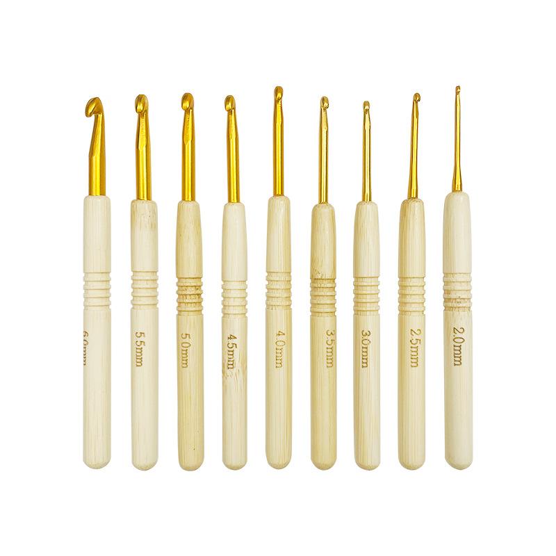 Set de ganchillo de cabeza dorada con mango de bambú transfronterizo hecho a mano herramientas de tejer DIY accesorios material aguja de suéter gancho al por mayor
