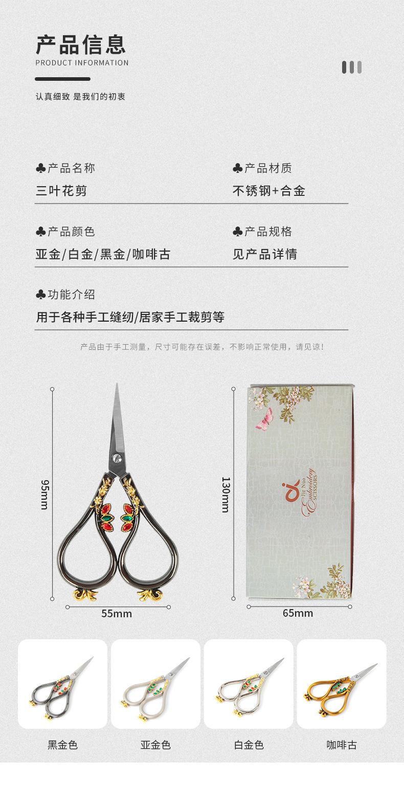 Three-leaf diamond scissors-platinum (boxed), Three-leaf diamond scissors-Black Gold (boxed), Three-leaf flowe...