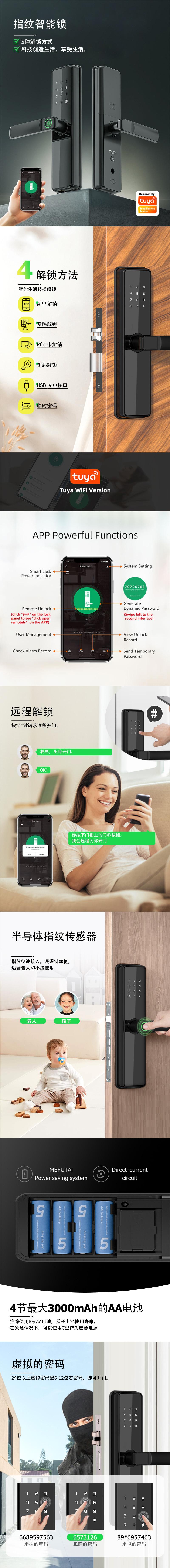Cerradura de huella dactilar con un solo agarre y manija abierta, Exportación, la más vendida en Estados Unidos, Cerradura de puerta con tarjeta de contraseña, Cerradura inteligente con aplicación Graffiti