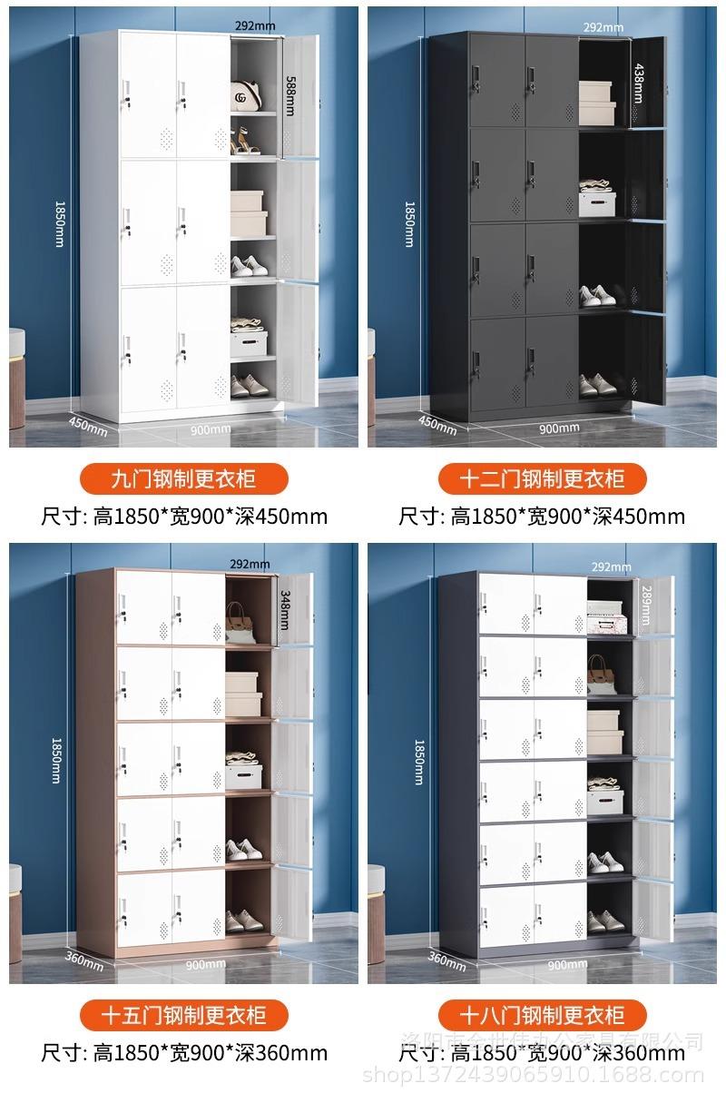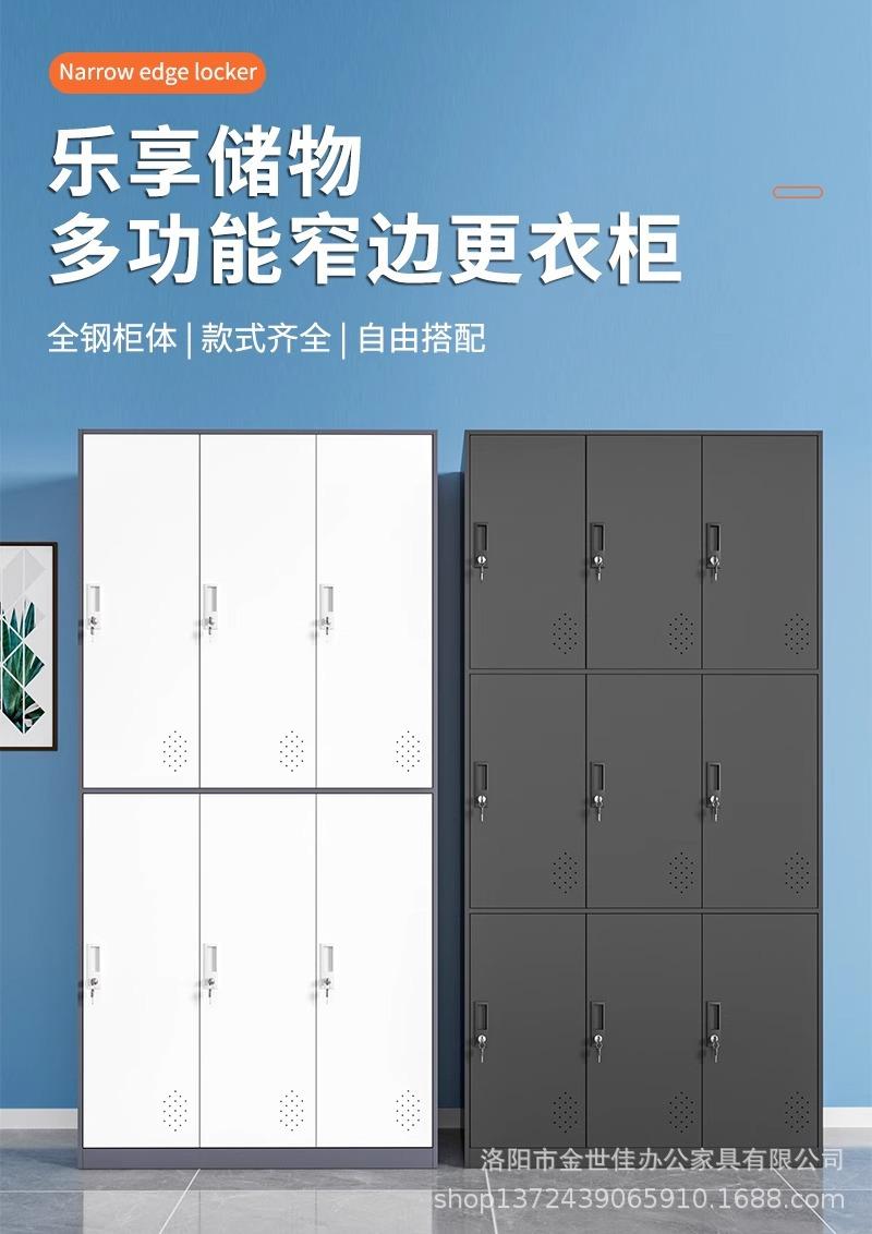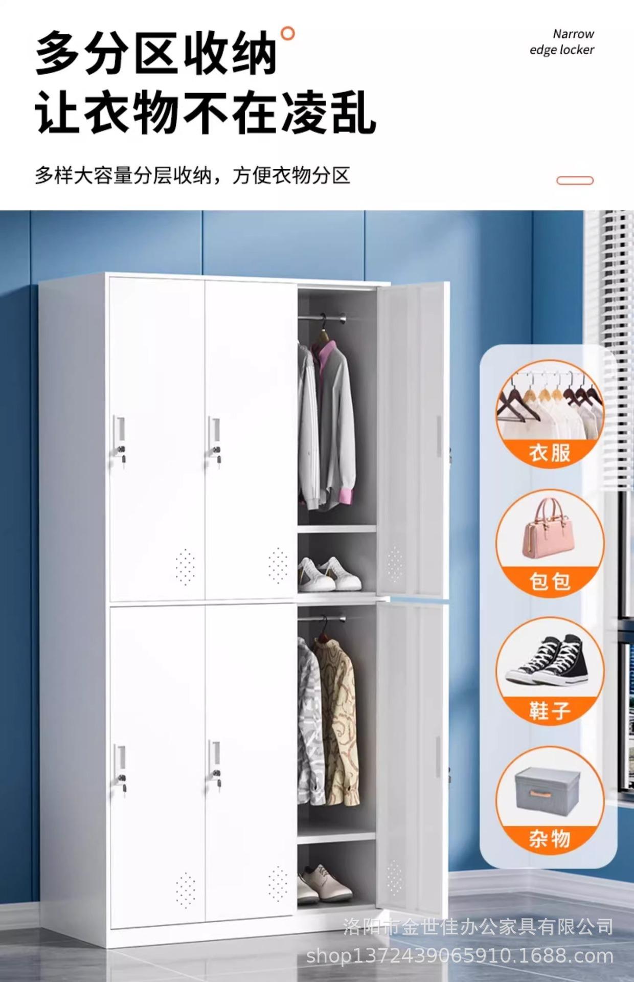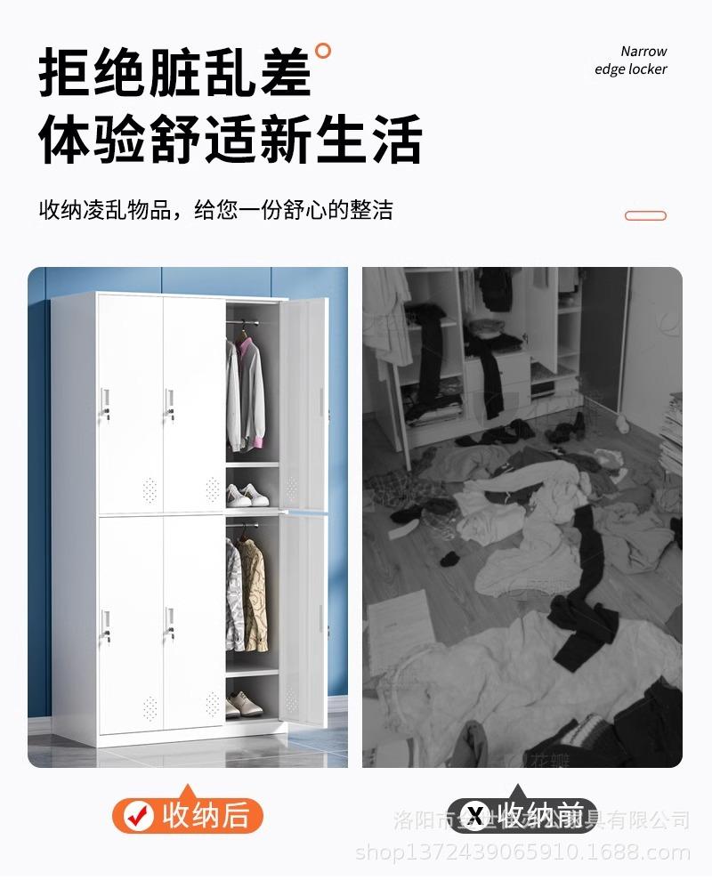 Armario de hierro para el personal, con bordes estrechos, desmontable y engrosado, con varias puertas y cerradura para dormitorio