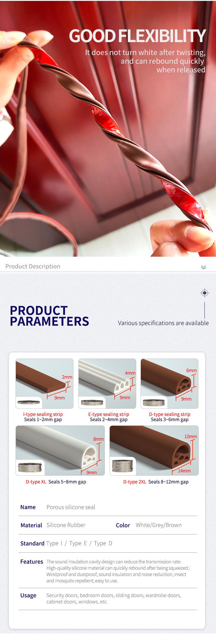 Tira de sellado para puerta corredera de madera transfronteriza, tira de aislamiento acústico a prueba de polvo y reducción de ruido para puertas y ventanas, tira de sellado de goma de silicona, tira antirrobo para puerta anticolisión