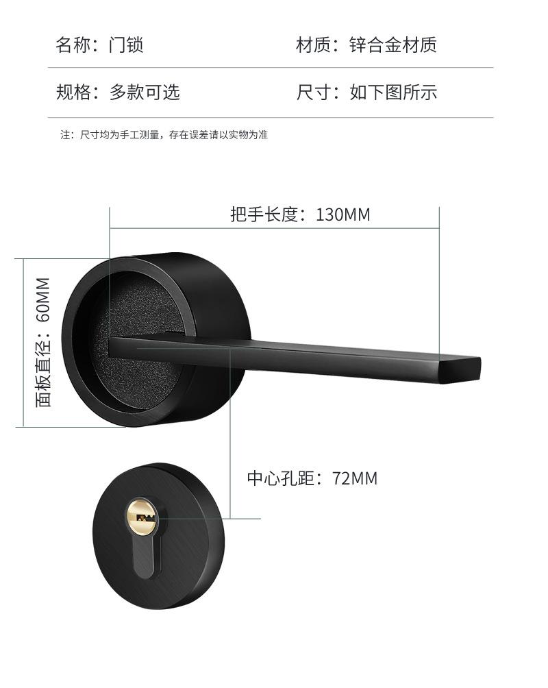 Cerradura de puerta minimalista de aleación de zinc, cerradura de puerta doméstica, cerradura de puerta de baño antirrobo, cerradura de manija de dormitorio, cerradura de puerta de madera