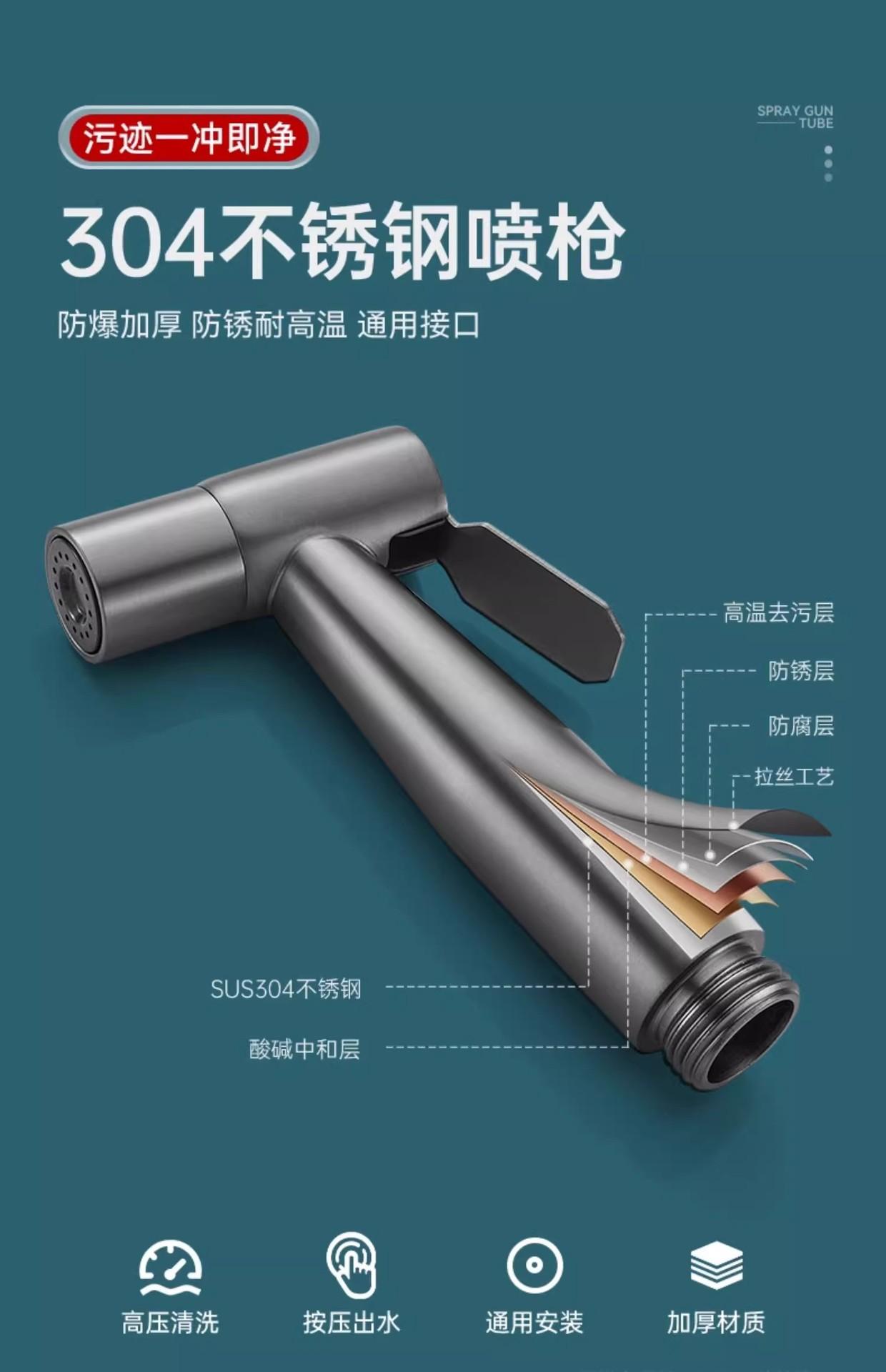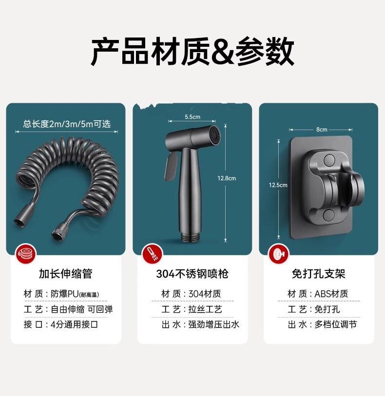 Tubo telefónico transfronterizo de 3 metros de largo galvanoplastia ABS lavadora femenina de mano pistola rociadora pequeña lavadora de inodoro lavadora de pedos para bebé