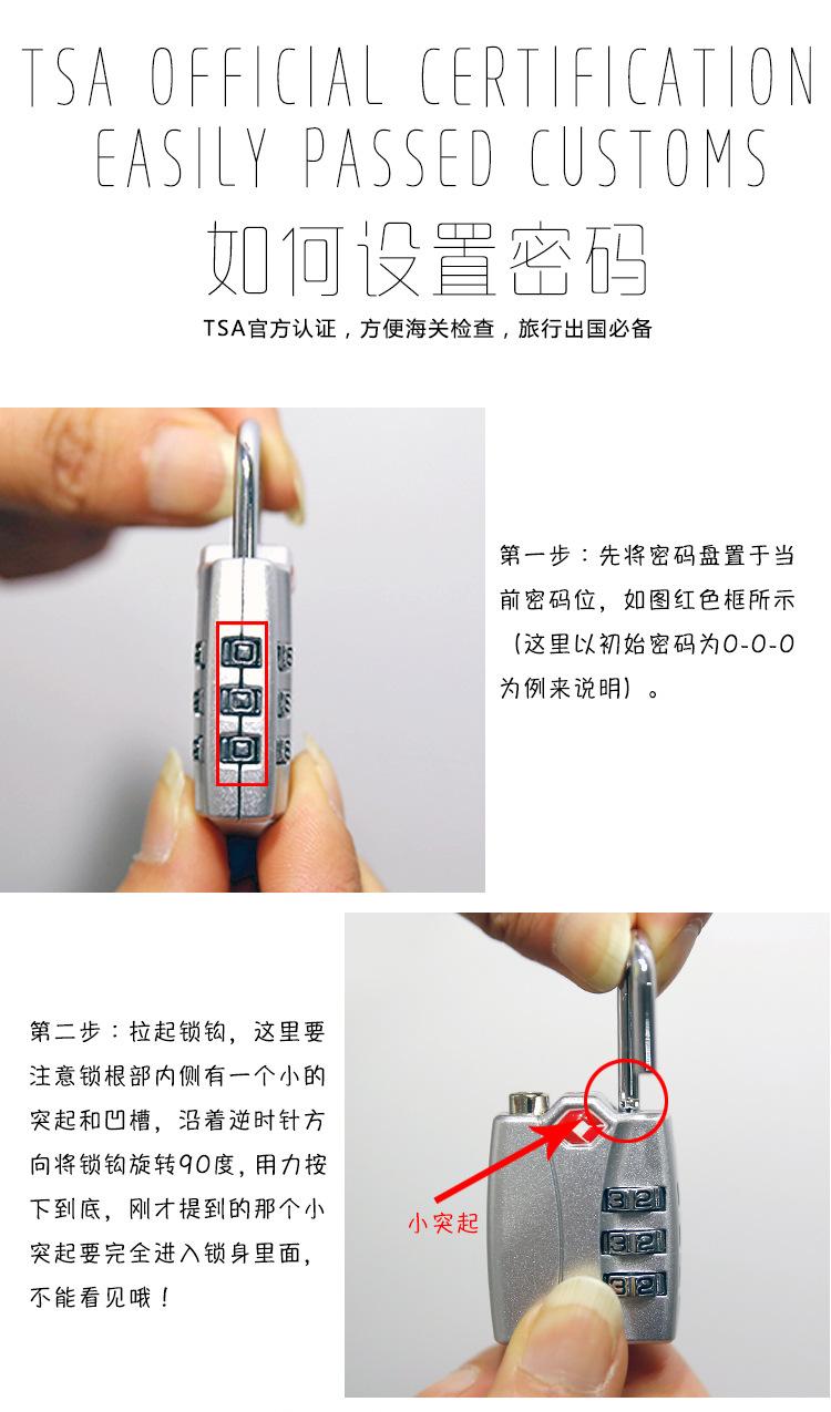 Ventajas: Fuerte y duradero. Con función de punto rojo, puede recordarle eficazmente si su equipaje ha sido abierto. Puede proteger más eficazmente la seguridad de usted, su familia y amigos.