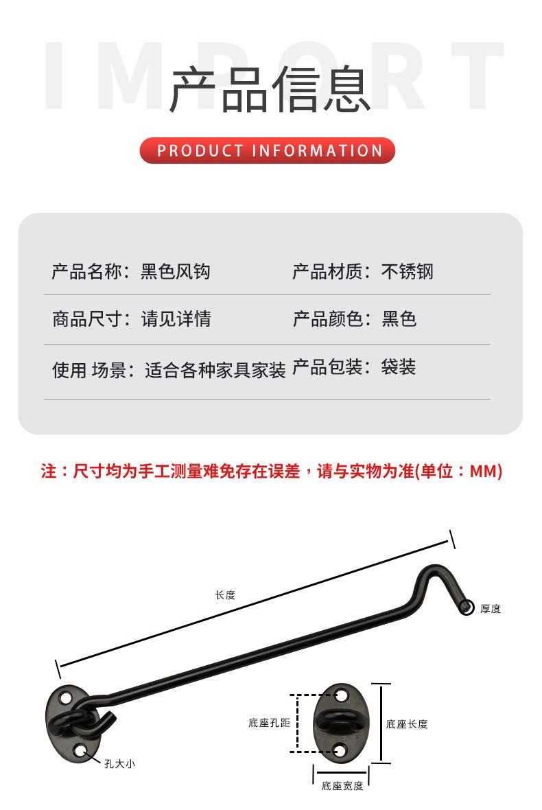 Acero inoxidable Gancho de viento negro engrosado accesorios de gancho para ventana gancho para puerta y ventana gancho gancho gancho viento Gancho herrajes mayoreo