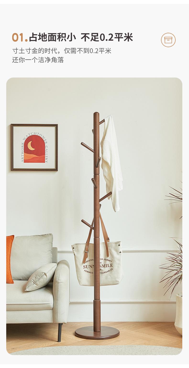 Perchero vertical de madera maciza para suelo de dormitorio, perchero sencillo de una sola varilla para ropa de uso doméstico.