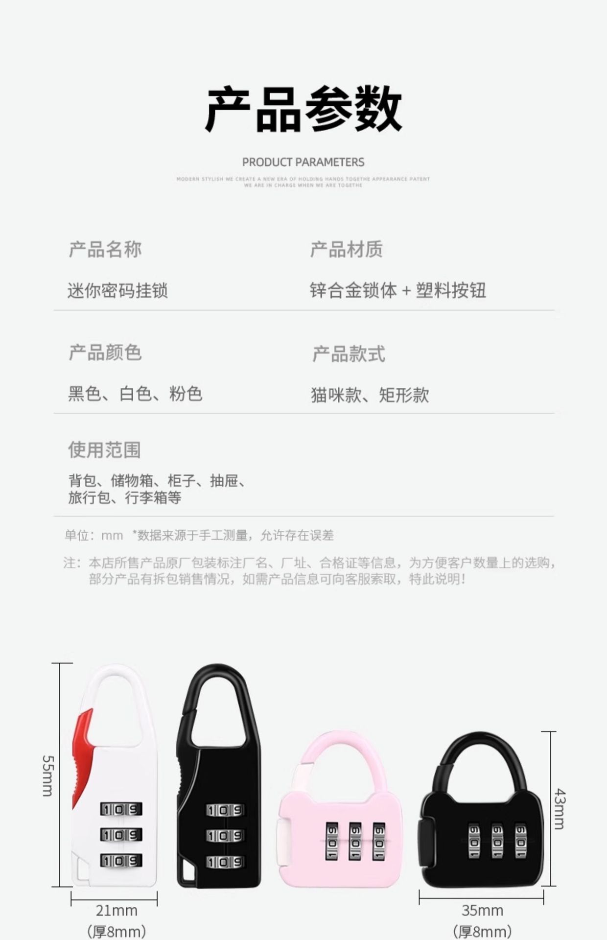 Candado de Contraseña Candado Maleta Candado Taquilla Mochila Escolar Equipaje Gimnasio Candado Pequeño Especial Mini Lindo