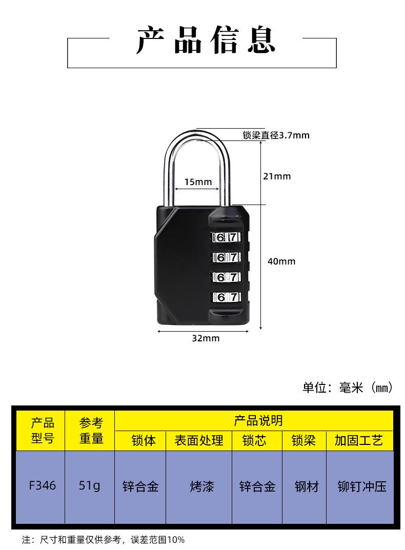 [Fábrica de origen] Candado con contraseña de aleación de zinc NBYT para dormitorio, gimnasio, armario, candado F346