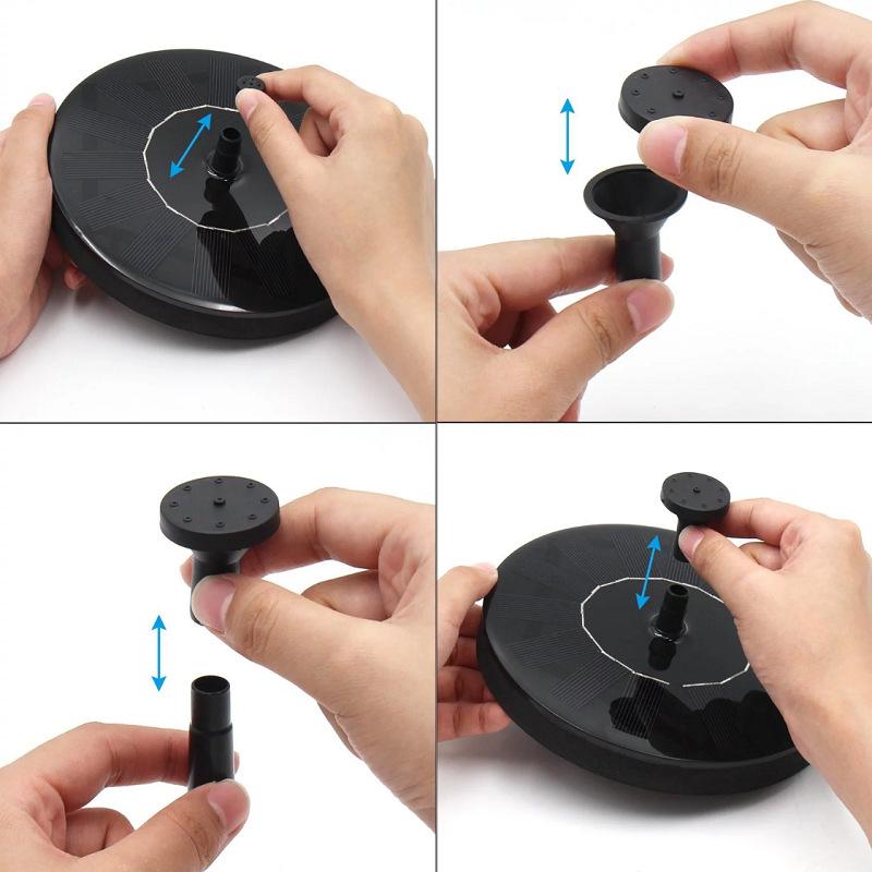 2) Coloque el panel solar en un lugar adecuado para asegurar que la luz no sea bloqueada por otros objetos. Cuando los paneles solares reciben suficiente luz, la bomba de agua funciona con normalidad.