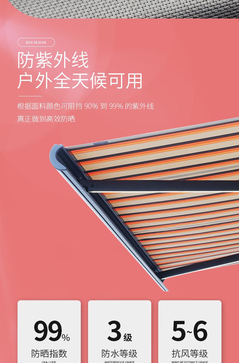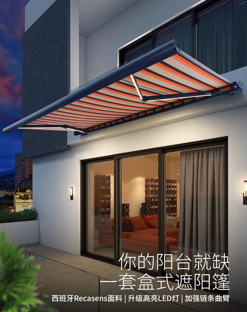 Toldo retráctil eléctrico de lujo de aleación de aluminio con caja completa, resistente, para exteriores, balcón y terraza.