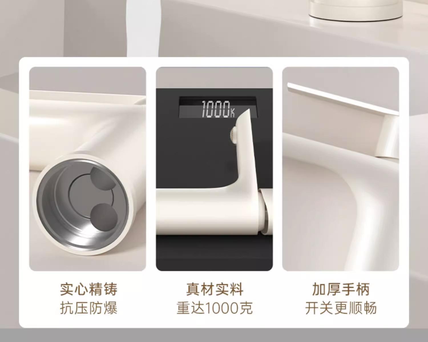 Lavabo de acero inoxidable estilo crema grifo blanco caliente y frío fregadero de doble uso lavabo de baño grifo de lavabo