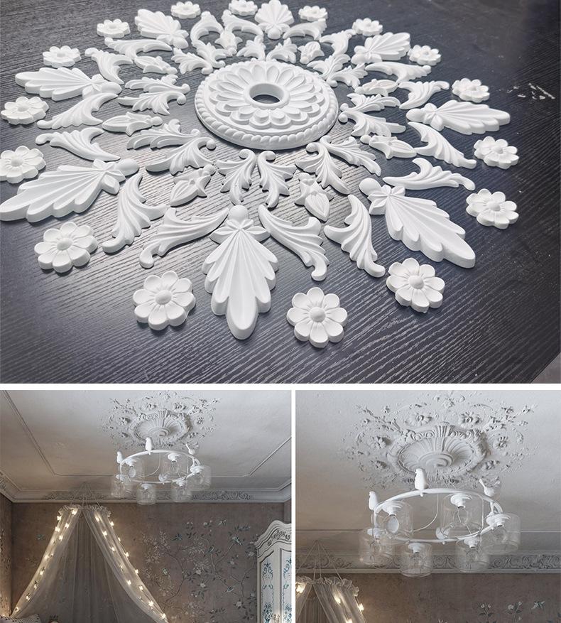 Xinhuang hogar blanco PU europeo línea de yeso encaje lado colgado boda techo venta al por mayor línea de encaje relieve