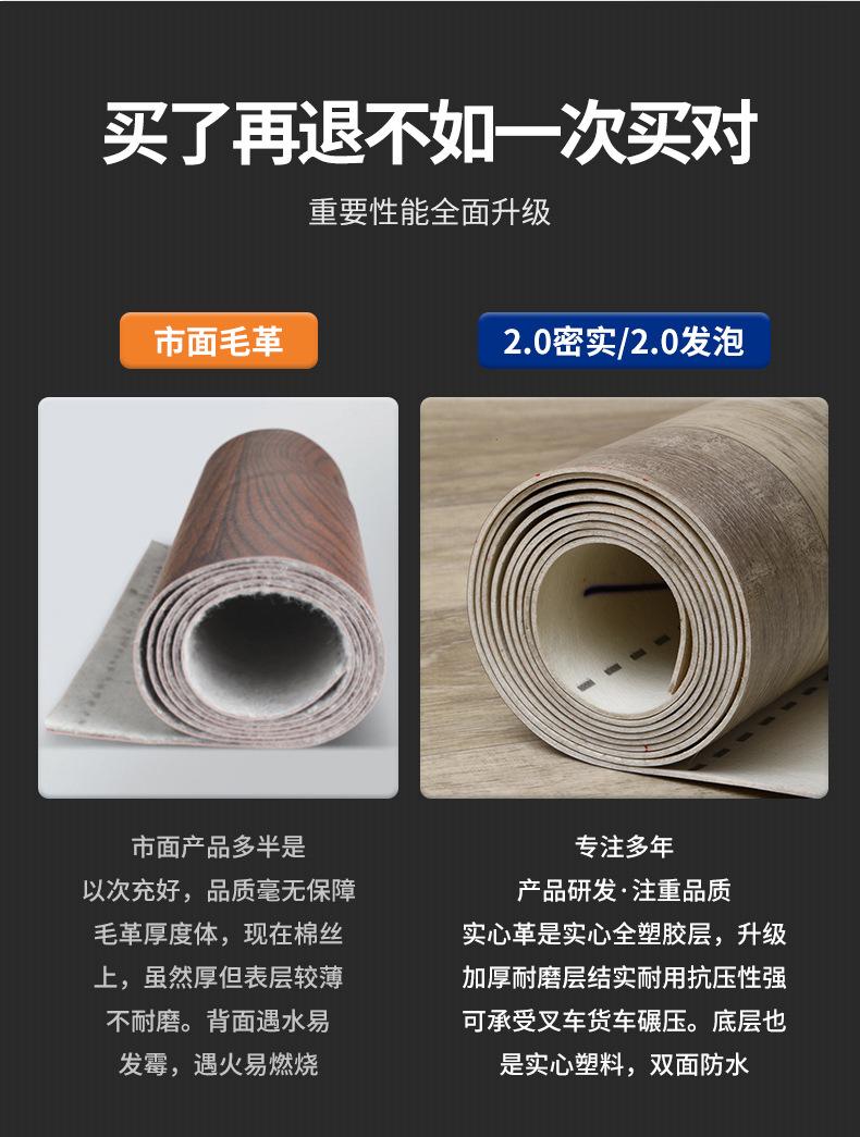 Piso de plástico comercial de 2,0 mm, cuero engrosado, impermeable, resistente al desgaste, PVC, autoadhesivo, pegatinas para piso de cemento