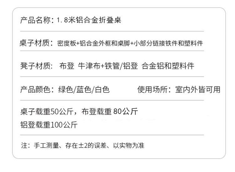 Mesa plegable para exteriores de 1,8 m de largo, de aleación de aluminio, mesa plegable y silla, mesa de puesto portátil, mesa de exposición móvil