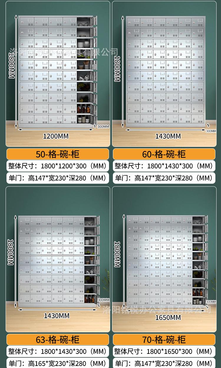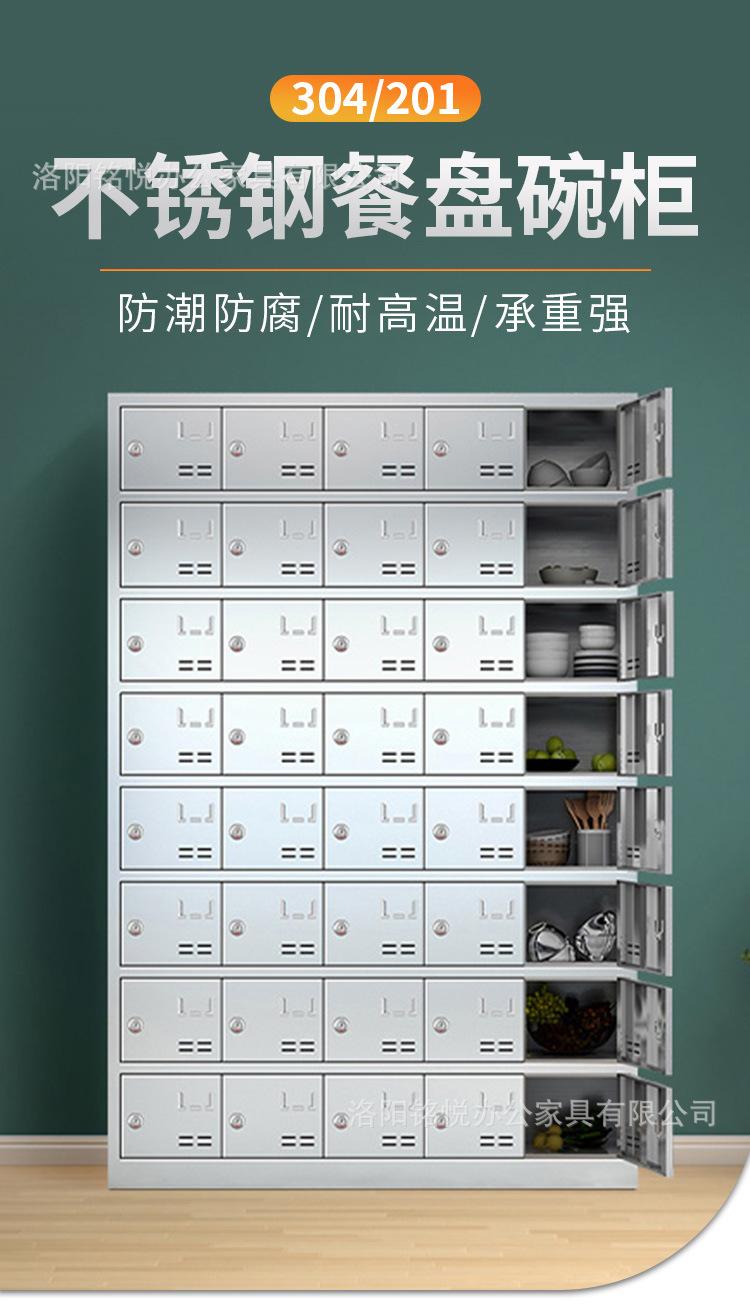 Alacena de acero inoxidable personal de comedor escolar gabinete de desinfección de vajilla gabinete de platos multigrid casillero de almacenamiento multi-puerta para vajilla