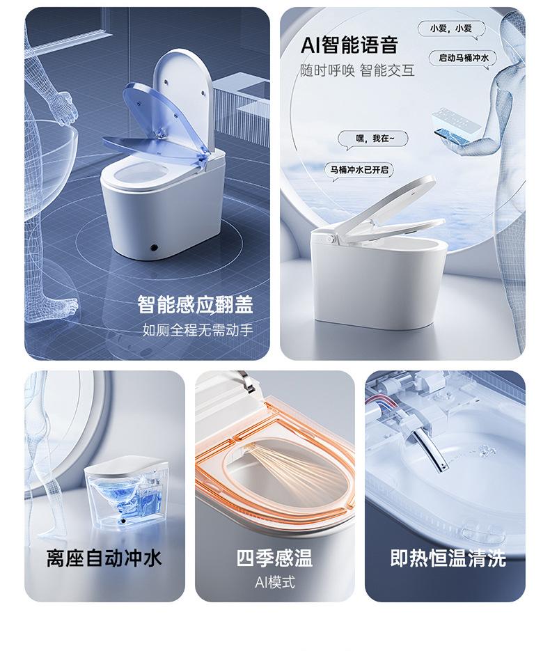 Inodoro inteligente con protector de espuma incorporado, inducción automática, tapa abatible, inodoro integrado, tipo de calentamiento instantáneo, sin límite de presión de agua